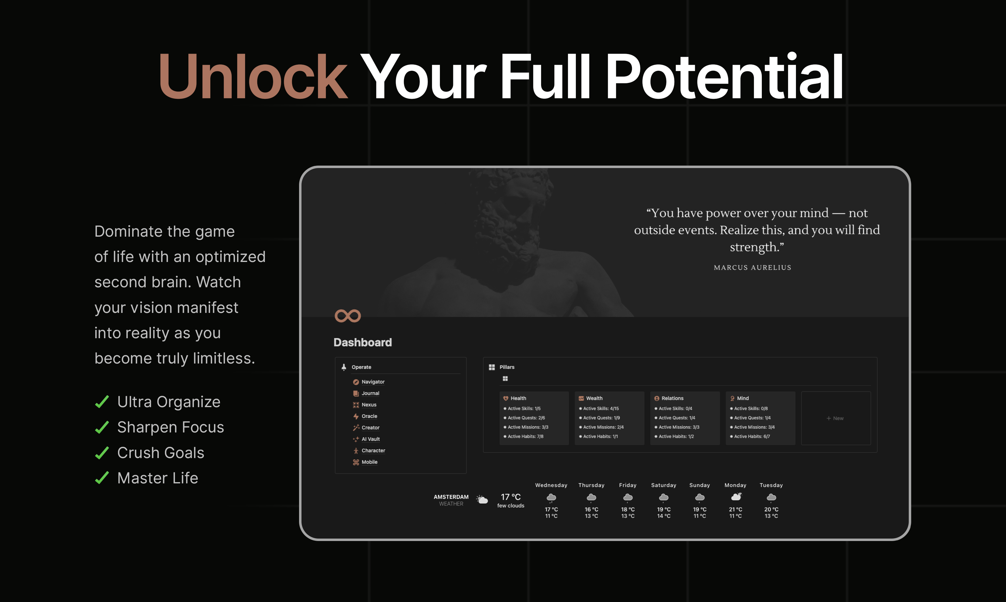 Unleash your limitless potential with a life operating system that centralizes and streamlines everything.