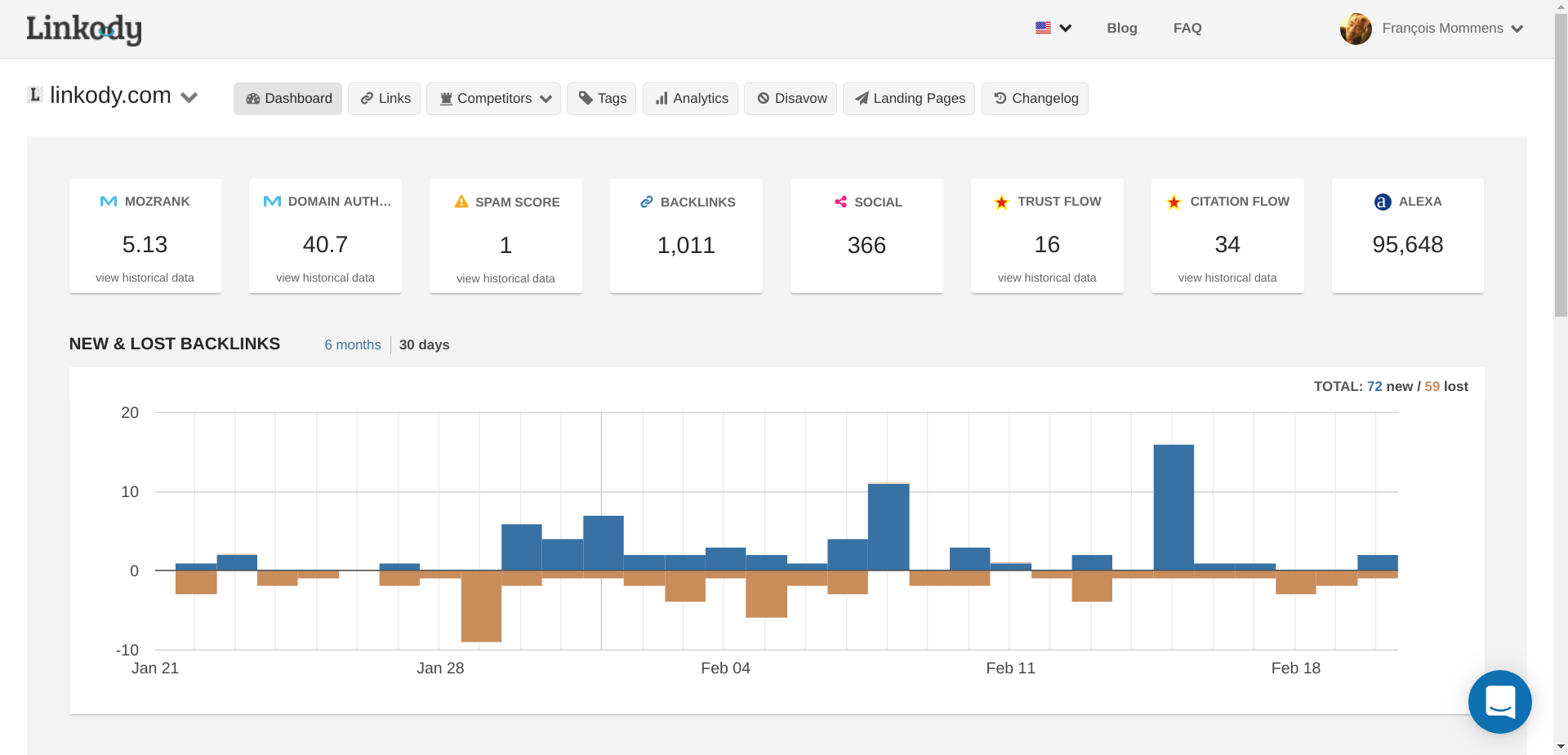 Linkody gives the opportunity to monitor everyone's backlinks and check which content gets the most links. This can bring your link-building efforts to a whole new level. Review collected by and hosted on G2.com.