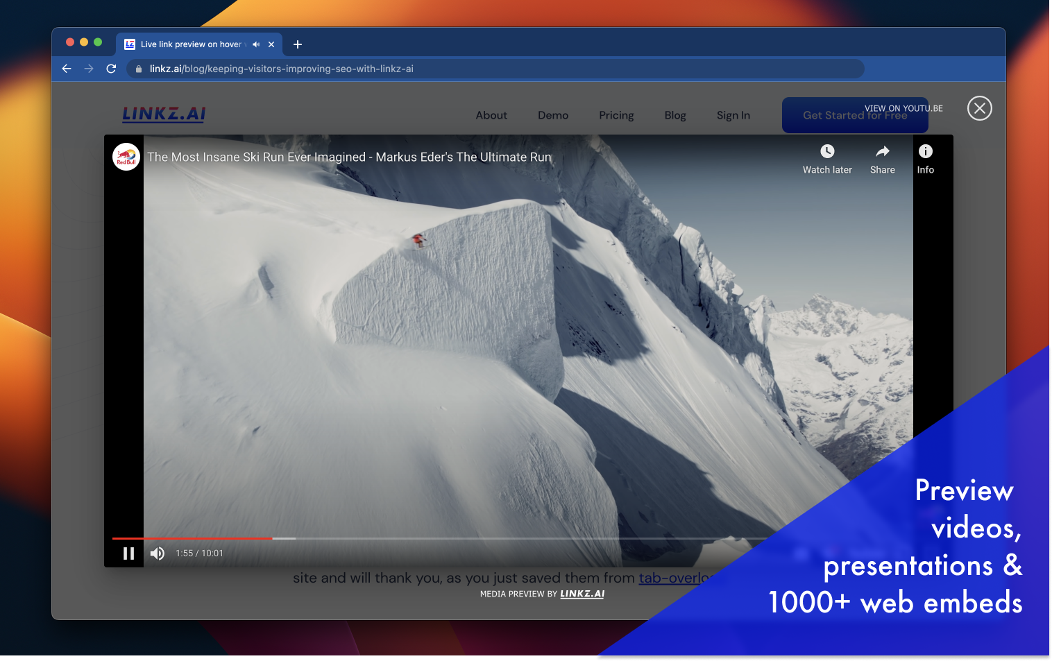 - Rich link preview on click, e.g. hyperlinks to YouTube or Wikipedia now open within our blog. I think this is a killer feature!