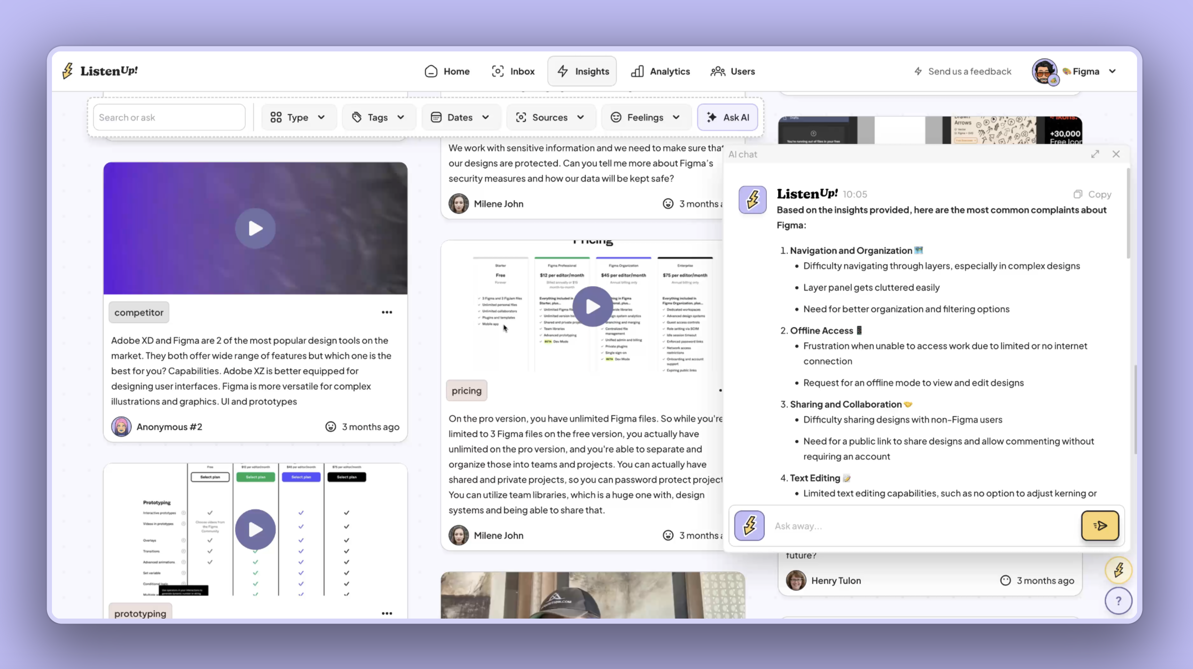 It is an easy to use tool to gather customer feedback, analyze it and provide insights about the customer's pain points by leveraging AI Review collected by and hosted on G2.com.