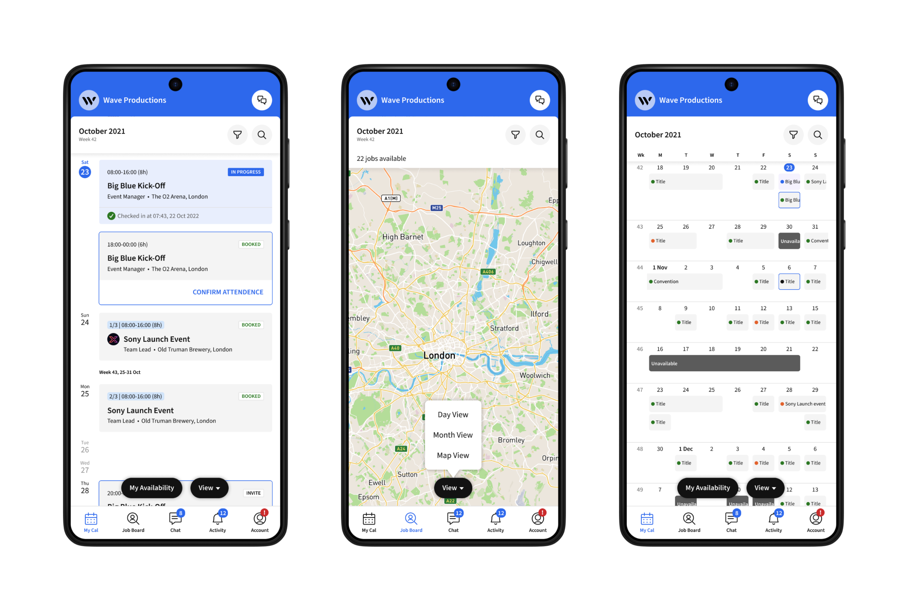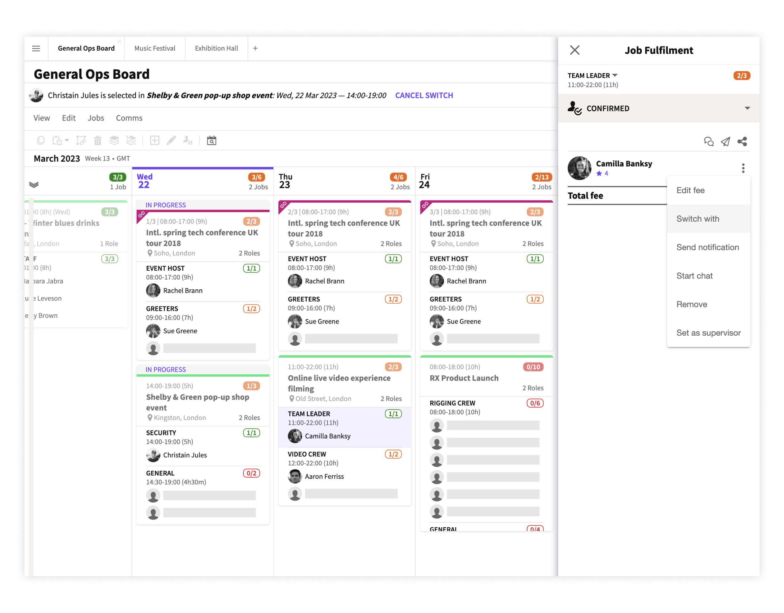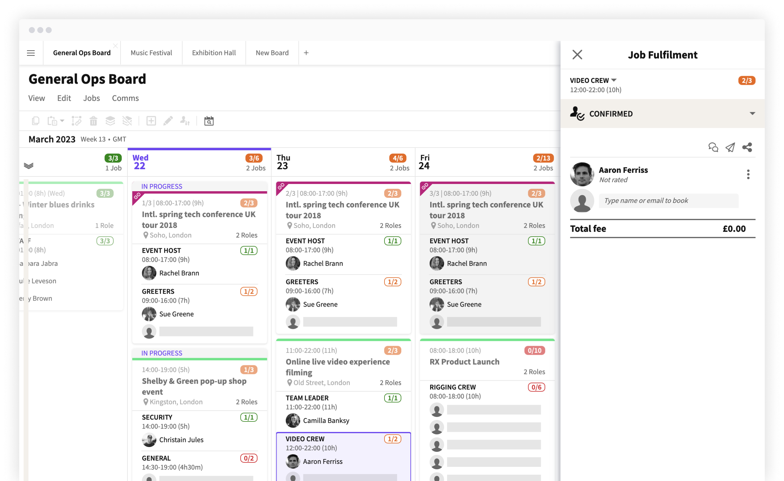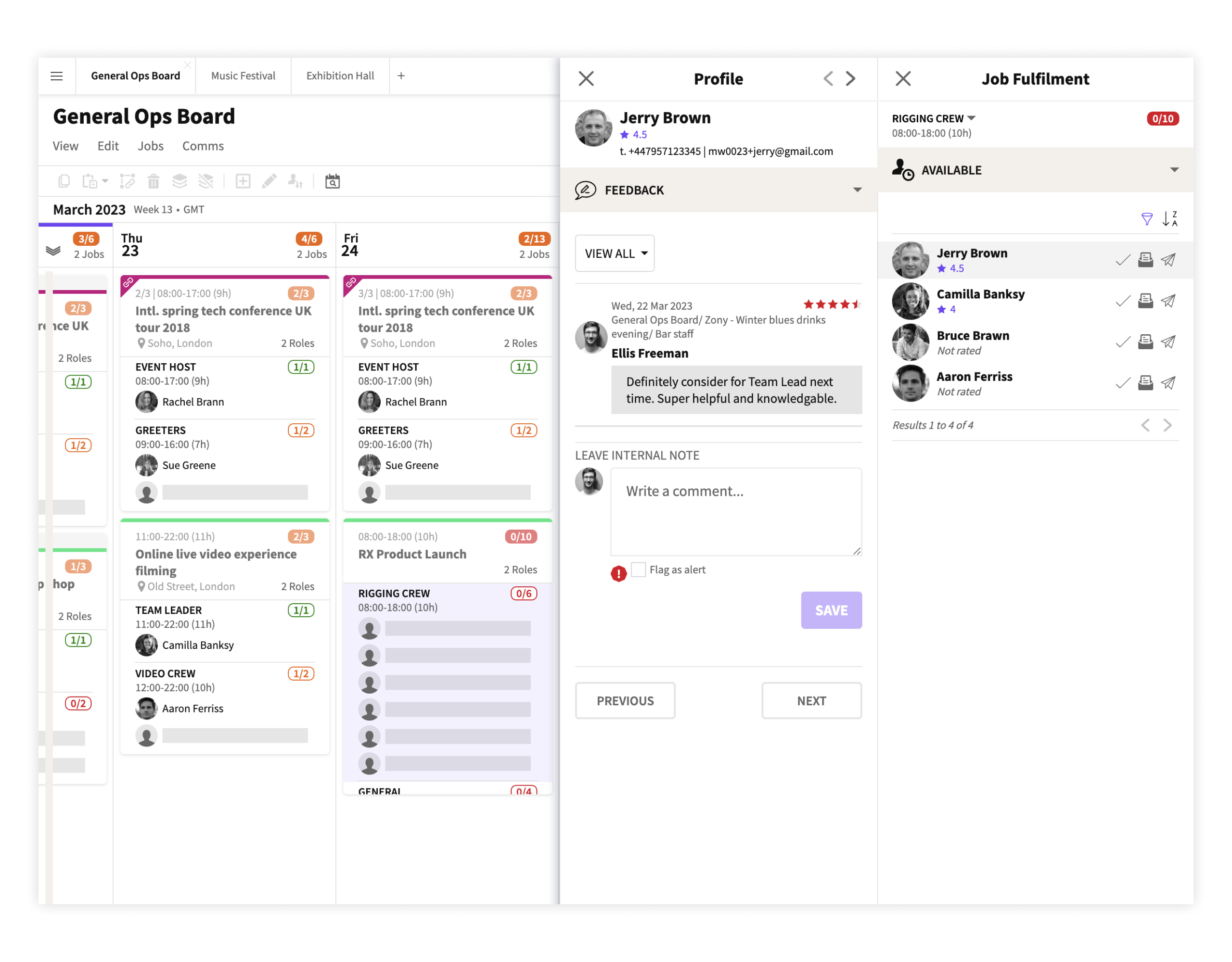 With Liveforce, you are in complete control of scheduling shifts and staff rotas. Find the best temp staff, freelancer or event prof for each job, role and shift and schedule them easily.