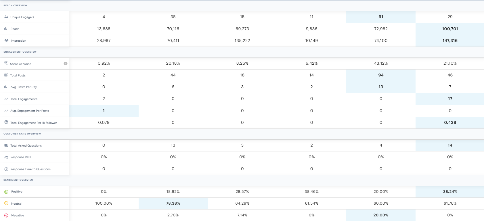 -Benchmark against competitors with share of voice analysis, sentiment tracking, and performance comparisons to identify strengths, weaknesses, and market gaps.