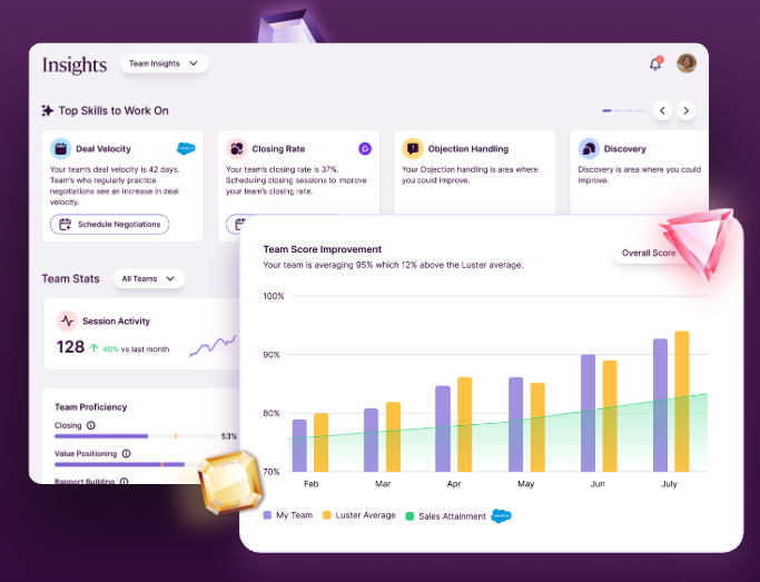 As an enablement leader, I appreciated the ability to see the analytics of skill performance across the team to help inform our enablement strategy moving forward. We have incorporated Luster sessions into our onboarding program and it's a great way to hep our reps ramp faster and get that critical practice in their first few days and weeks.
