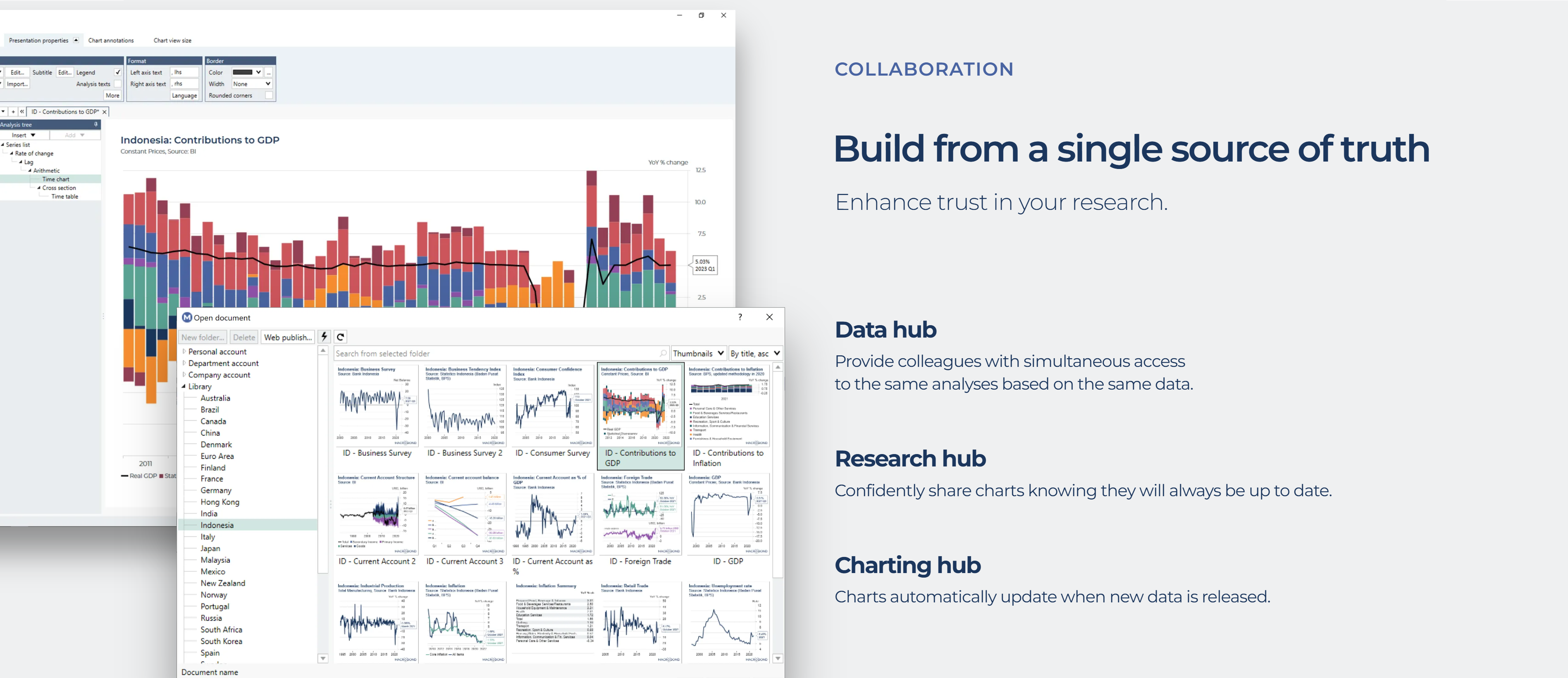For an econ data research platform, the most differentiating thing about macrobond is the well built out visualization / charting capabilities. You can very easily explore any data and perform analysis right there on the platform, no need to download the data and then use your own tools. They also have tagged data concepts well so if you find a piece of data in one country you can very easily find comparables in another country. Review collected by and hosted on G2.com.