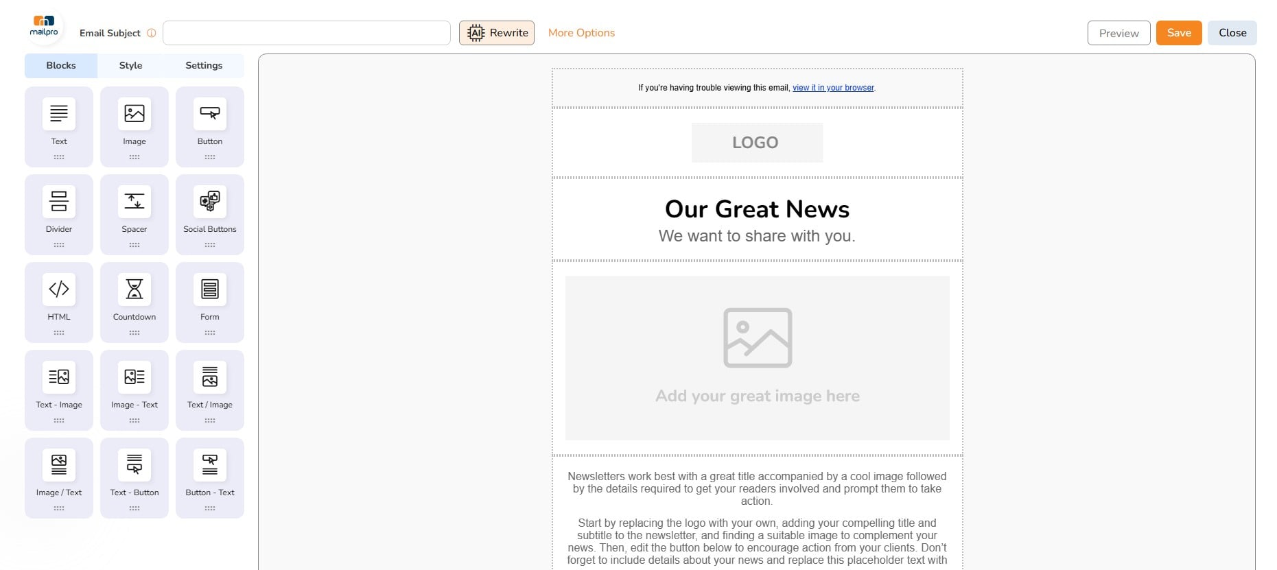 Automation and Autoresponders: Automating certain tasks, such as sending welcome emails or follow-ups, can be beneficial. Mailpro might provide features like autoresponders and email automation, which can save time and improve the overall efficiency of email campaigns. Review collected by and hosted on G2.com.
