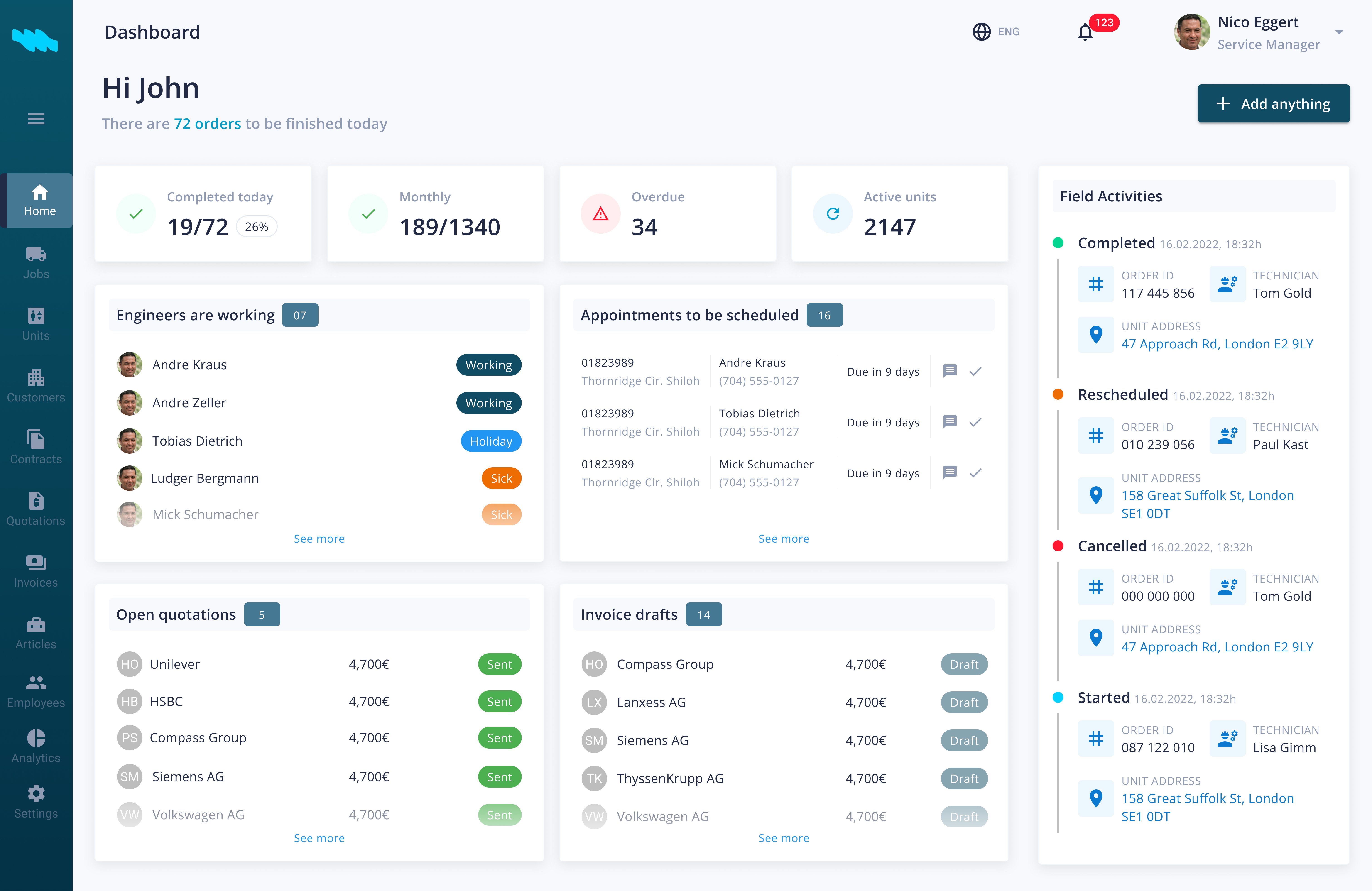 No-nonsense customer management, scheduling and invoicing software for field services.