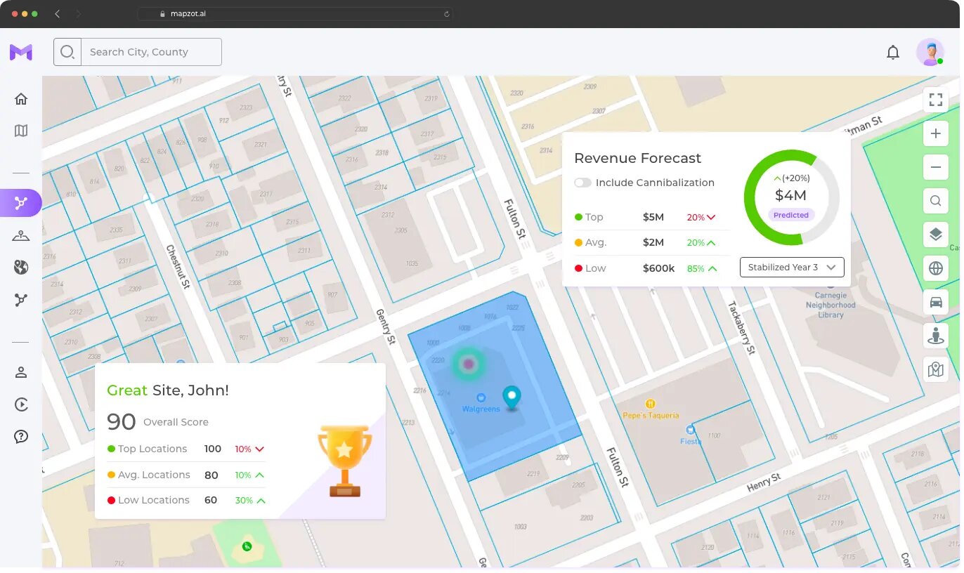 MapZot.AI is an advanced AI-powered site selection and predictive analytics platform designed to help retailers, commercial real estate professionals, and urban planners make smarter location decisions. Based in Atlanta, GA, our mission is to eliminate guesswork in real estate site selection by combining mobility data, traffic forecasting, and revenue prediction models into one easy-to-use software solution.