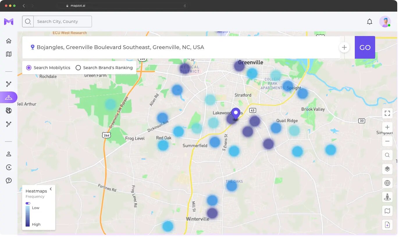 Mobility Heatmaps & GIS Mapping to visualize demand across trade areas.