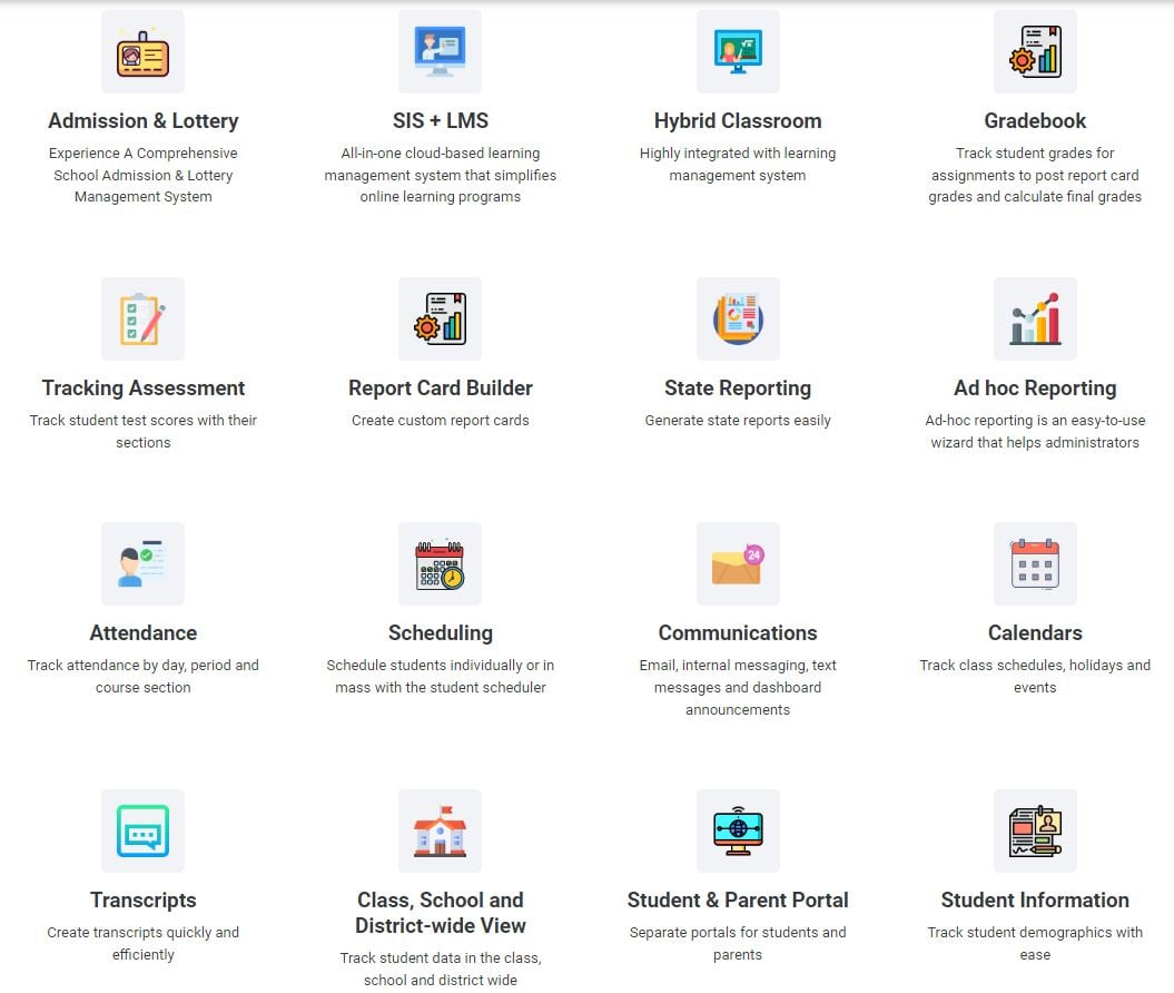 The grade book features, report card builder, attendance management and integrated LMS are among the features that we loved most. The data migration team was supportive and the set up was done very fast. Review collected by and hosted on G2.com.