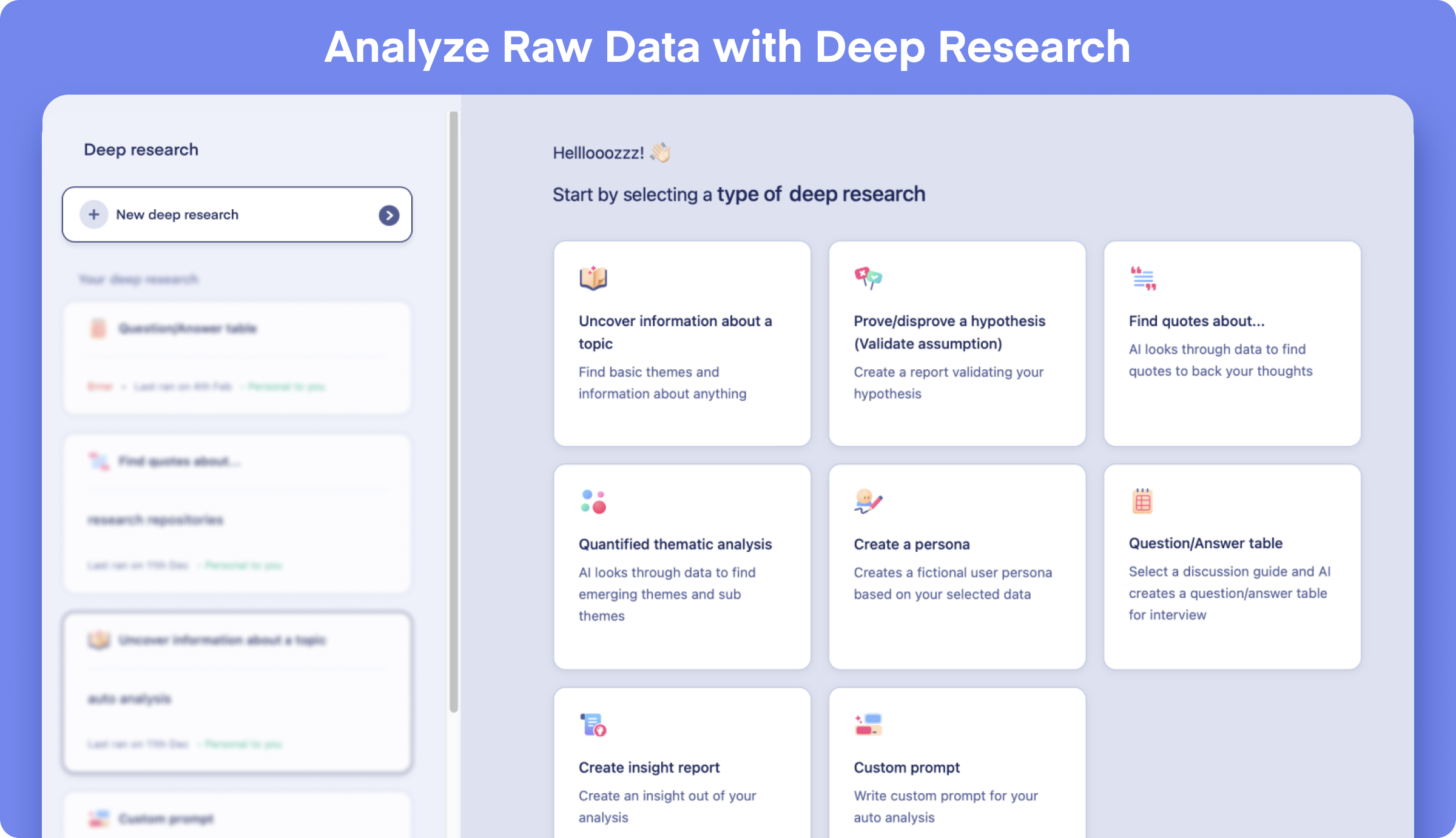 Our Ask AI and Deep Research tools empower users to pose questions about their customers and receive insightful answers within minutes, facilitating a more efficient and effective research workflow.