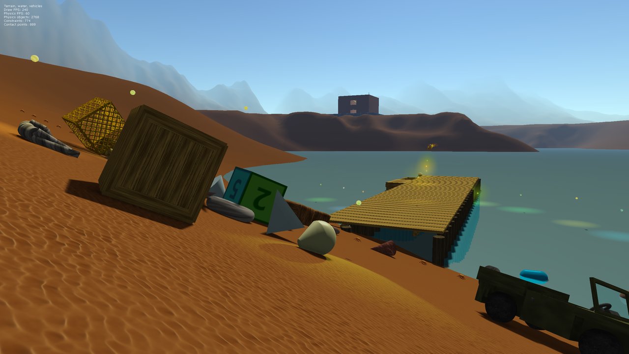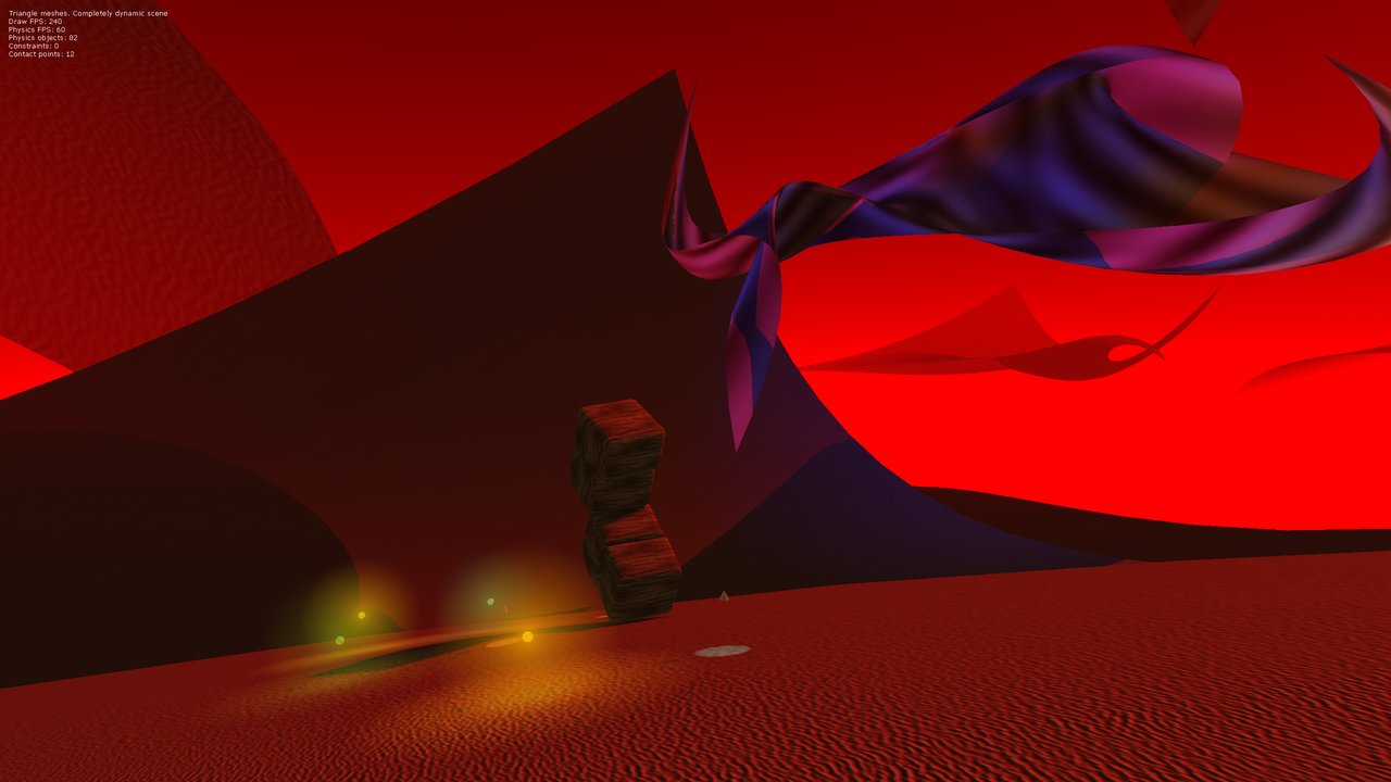 Bullet is a physics engine which stimulates collision detection, soft and rigid body dynamics, soft body support, and more.