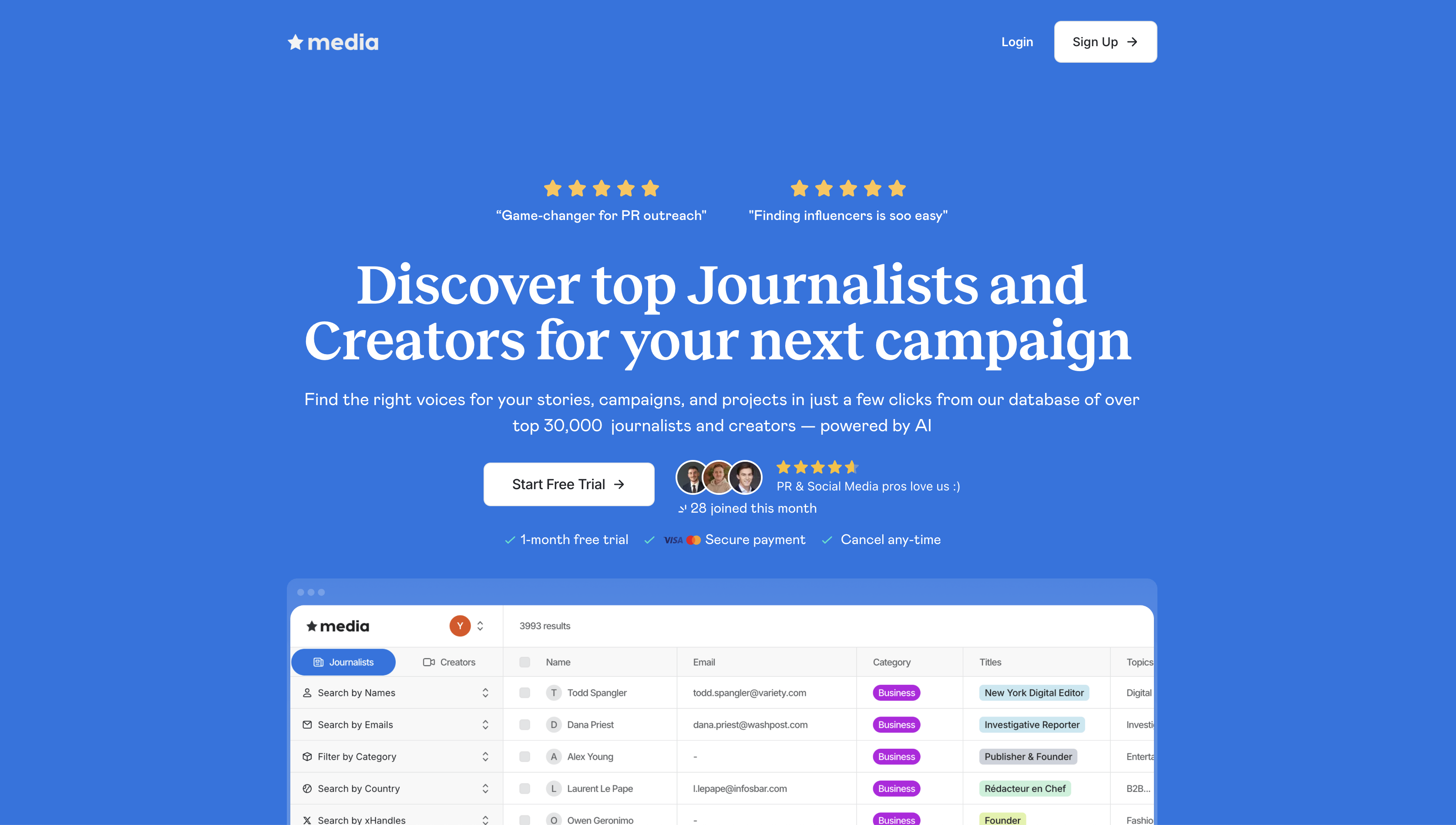 Manage and measure a data-driven PR program with hyper-targeted search, pitching, social media and journalist relations features.