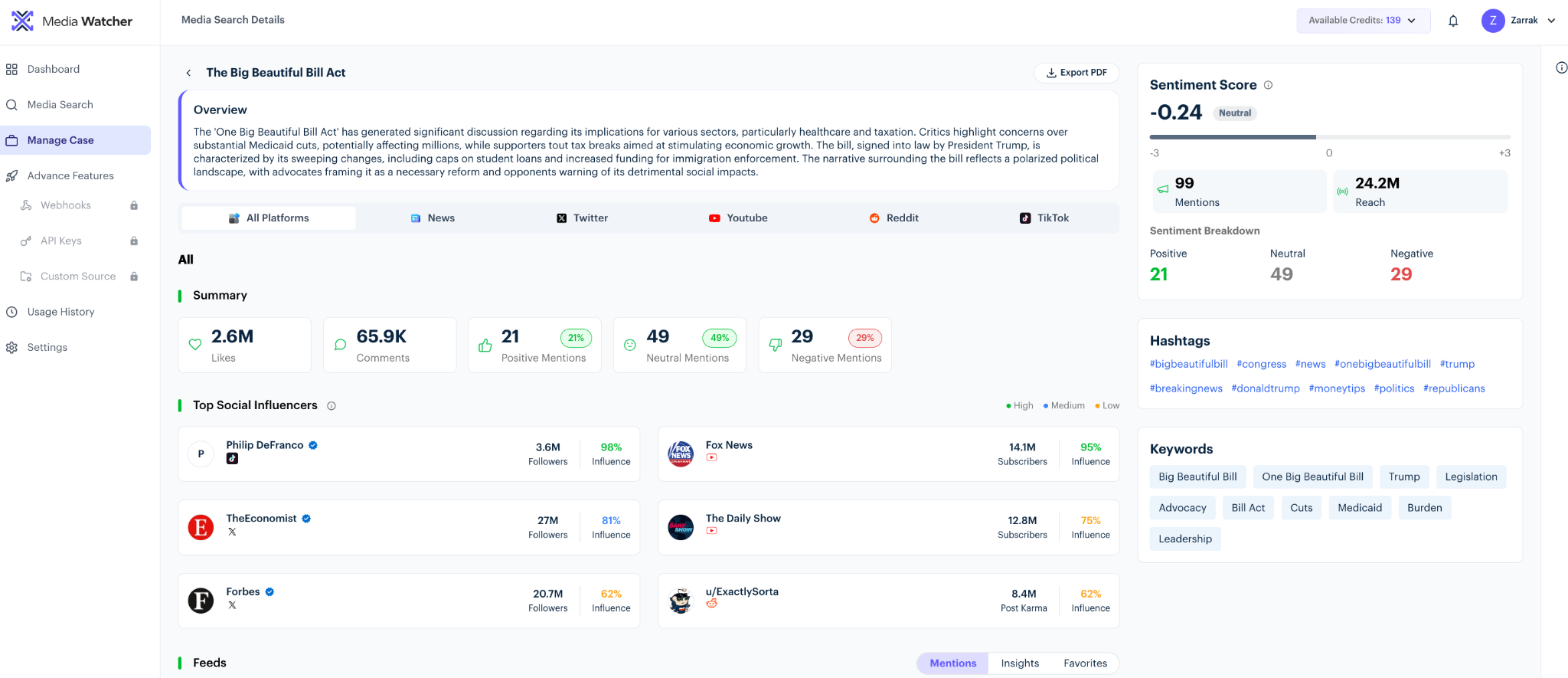 With TVEyes media monitoring service you can quickly and easily discover TV, radio, podcast and online video coverage.