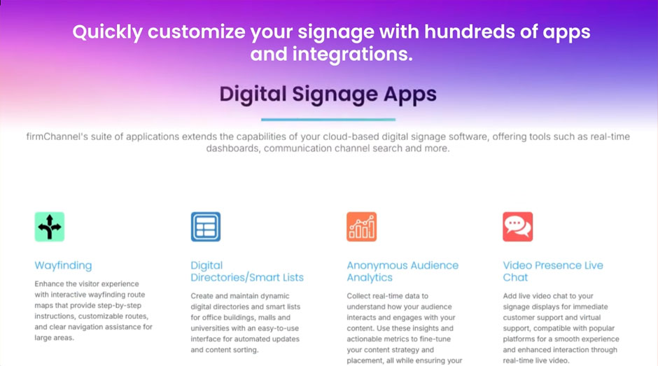 ScreenCloud is a SaaS product for enabling digital signage on any screen. They work with consumer grade hardware like Chromecast and Amazon Fire TV.