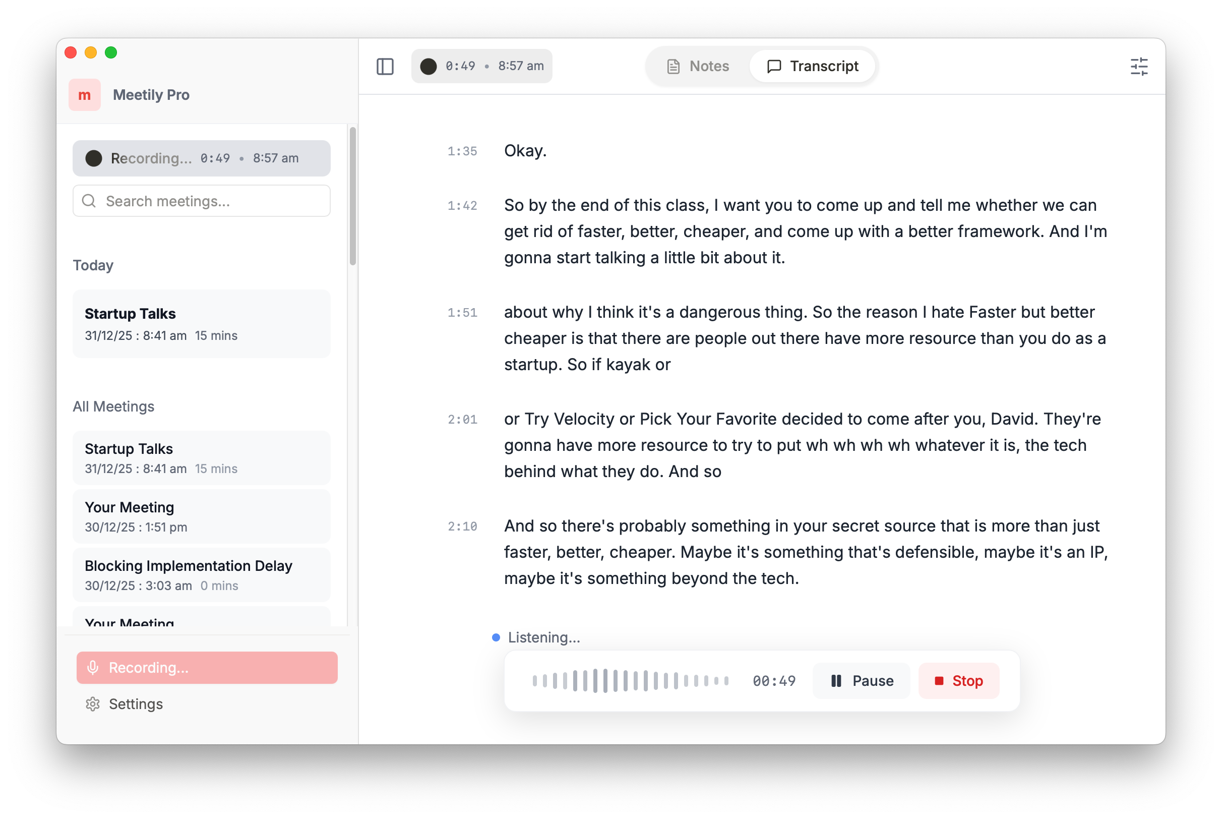 The local processing approach means my meeting recordings never leave my computer. As someone who handles confidential client calls, this was the deciding factor. No meeting bot joining my calls . It captures system audio directly, so participants don't see an extra attendee, which also handles the meeting tool integration effectively. The transcription quality is solid, and I can review everything offline. The tool is easy to use and the deployment in our environment was easy. The support team is very reactive and the tool itself is running well for my daily meeting note taking use case. Review collected by and hosted on G2.com.