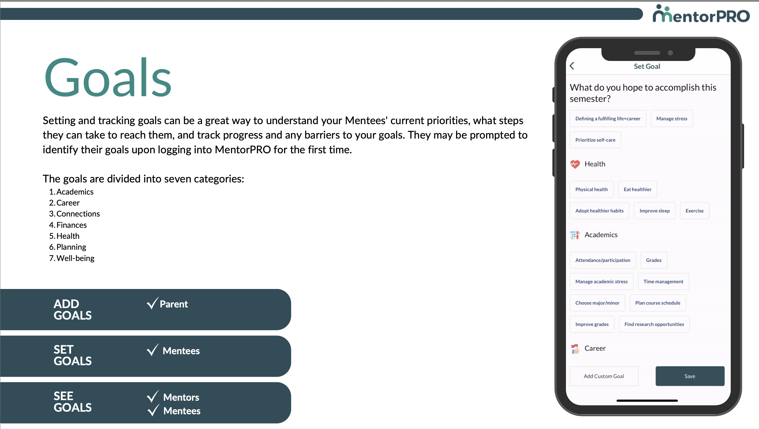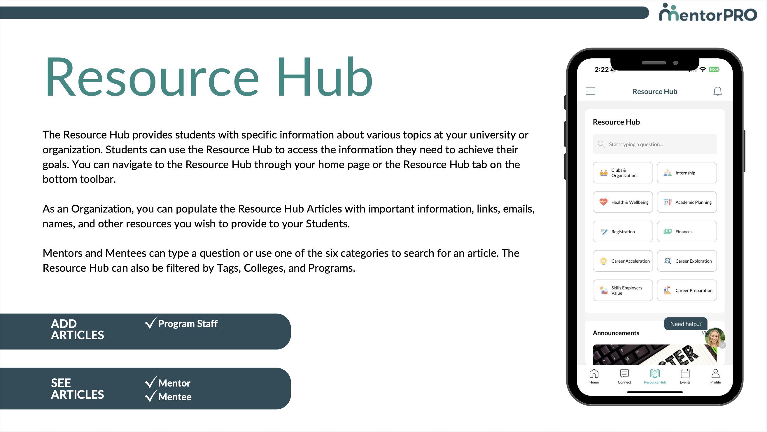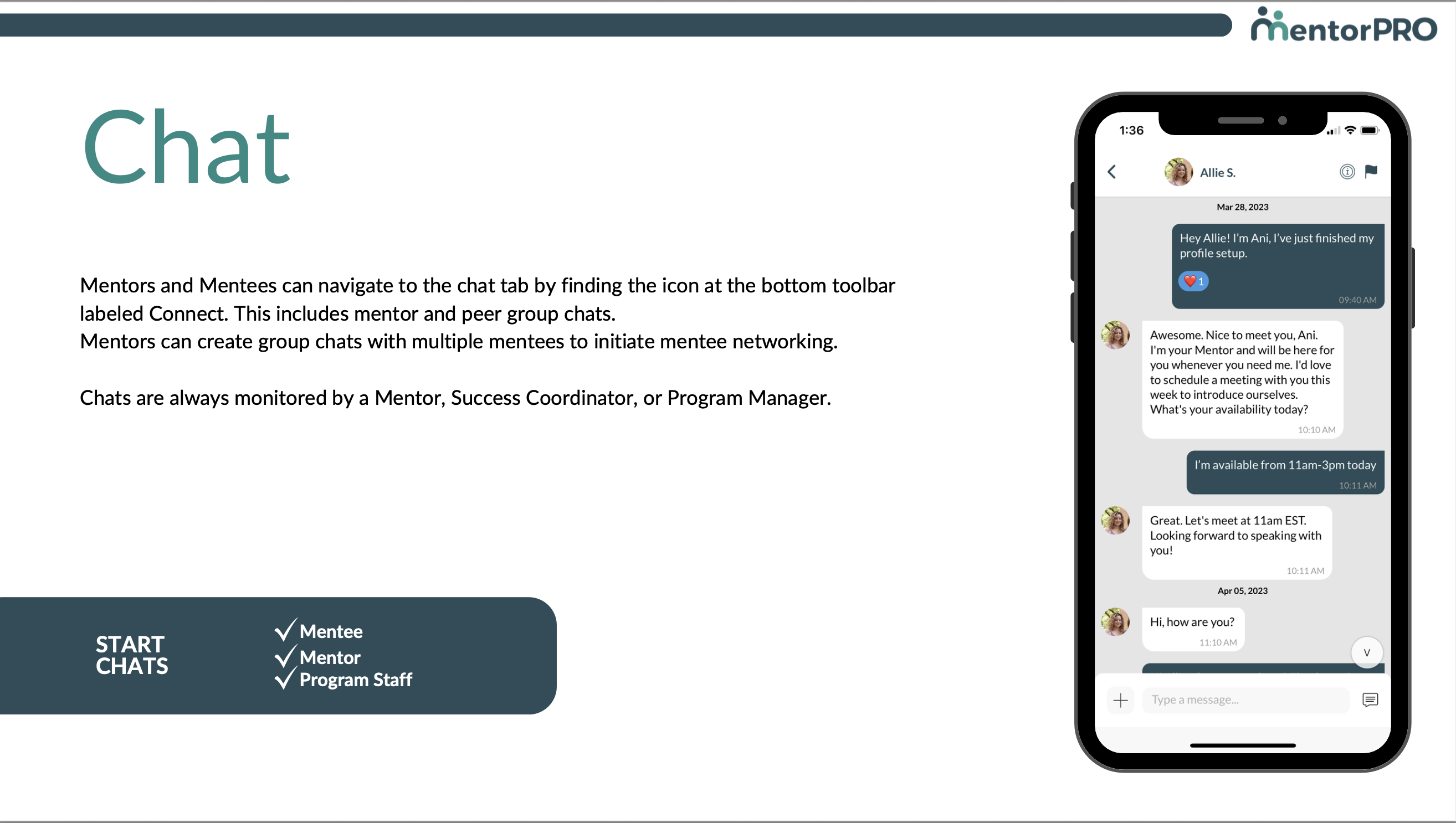 I enjoy the ability to contact our students in a controlled and distraction free environment. Other social media platforms allow distractions to both staff and students, MentorPro prevents these distractions. It allows the tracking of how your audience is doing as well when they fill out personal assessments that are easy to read. Also adding and subtracting new members is easy, adding resources that are useful for your audience, and developing tags that make it easy to search through them. Customer support has been amazing and responsive, with replies stating they are working on a response, and updates as they work on it or delivering the answer in a timely manner. Review collected by and hosted on G2.com.