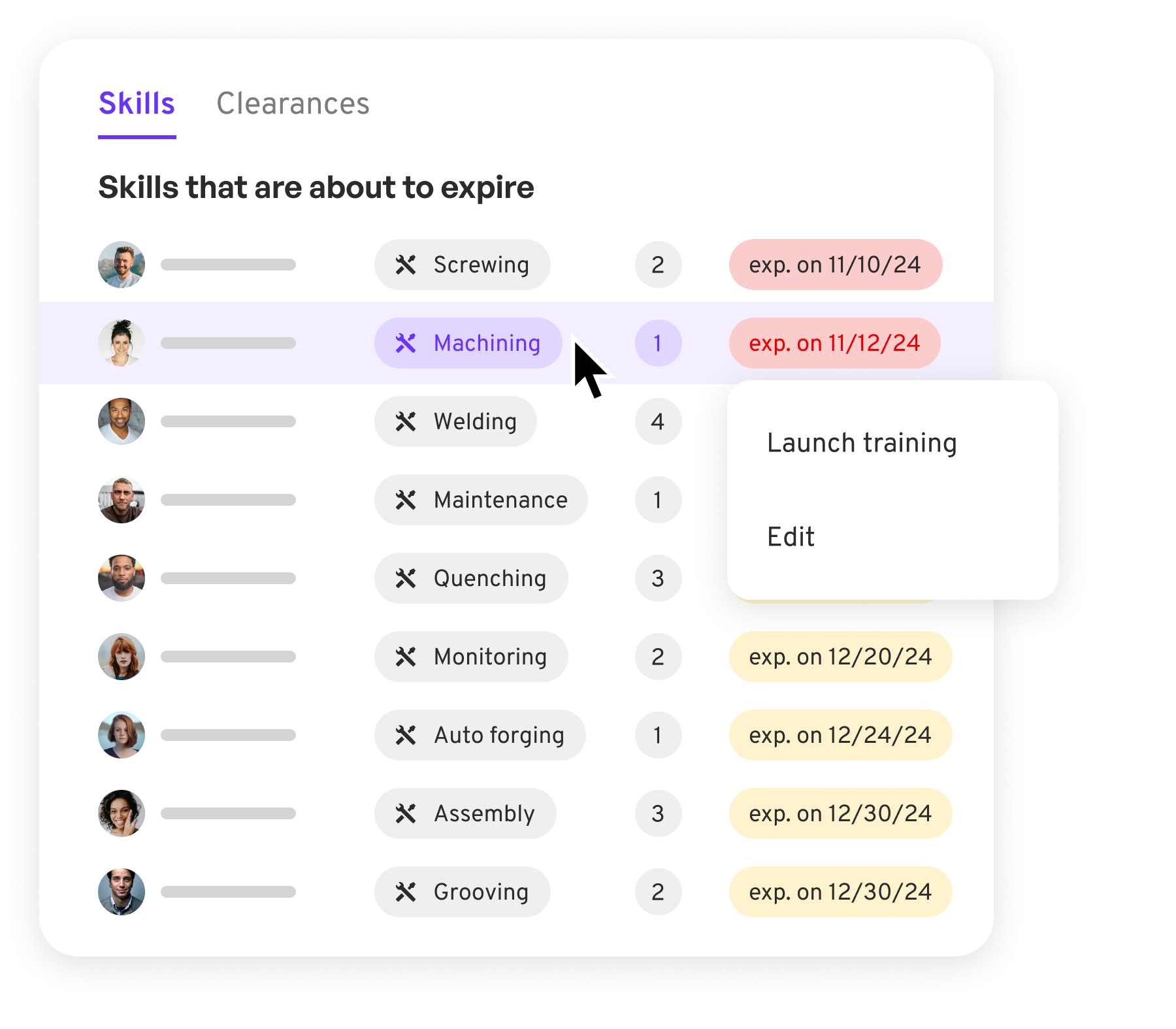 Dynamic skills matrix