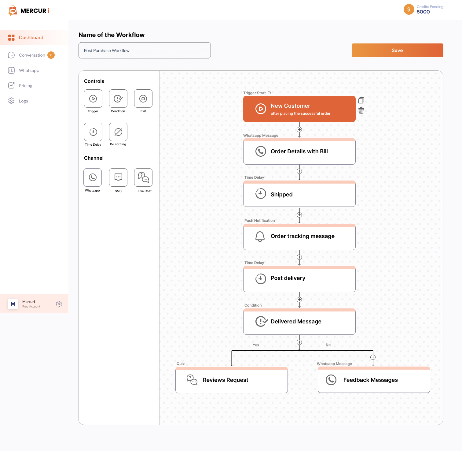 1. Multi-Channel Communication: Mercuri.cx supports both SMS and WhatsApp messaging, allowing businesses to reach their customers on their preferred platform.