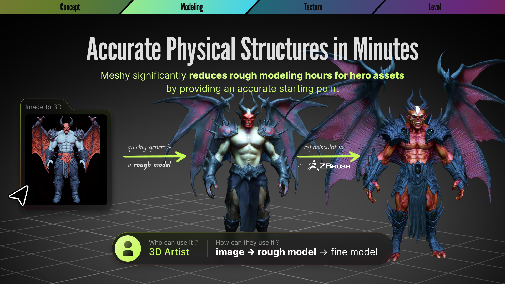 It supports seamless integration with industry-standard software like Blender, Unity and ZBrush, making it ideal for applications in gaming, film, and animation.