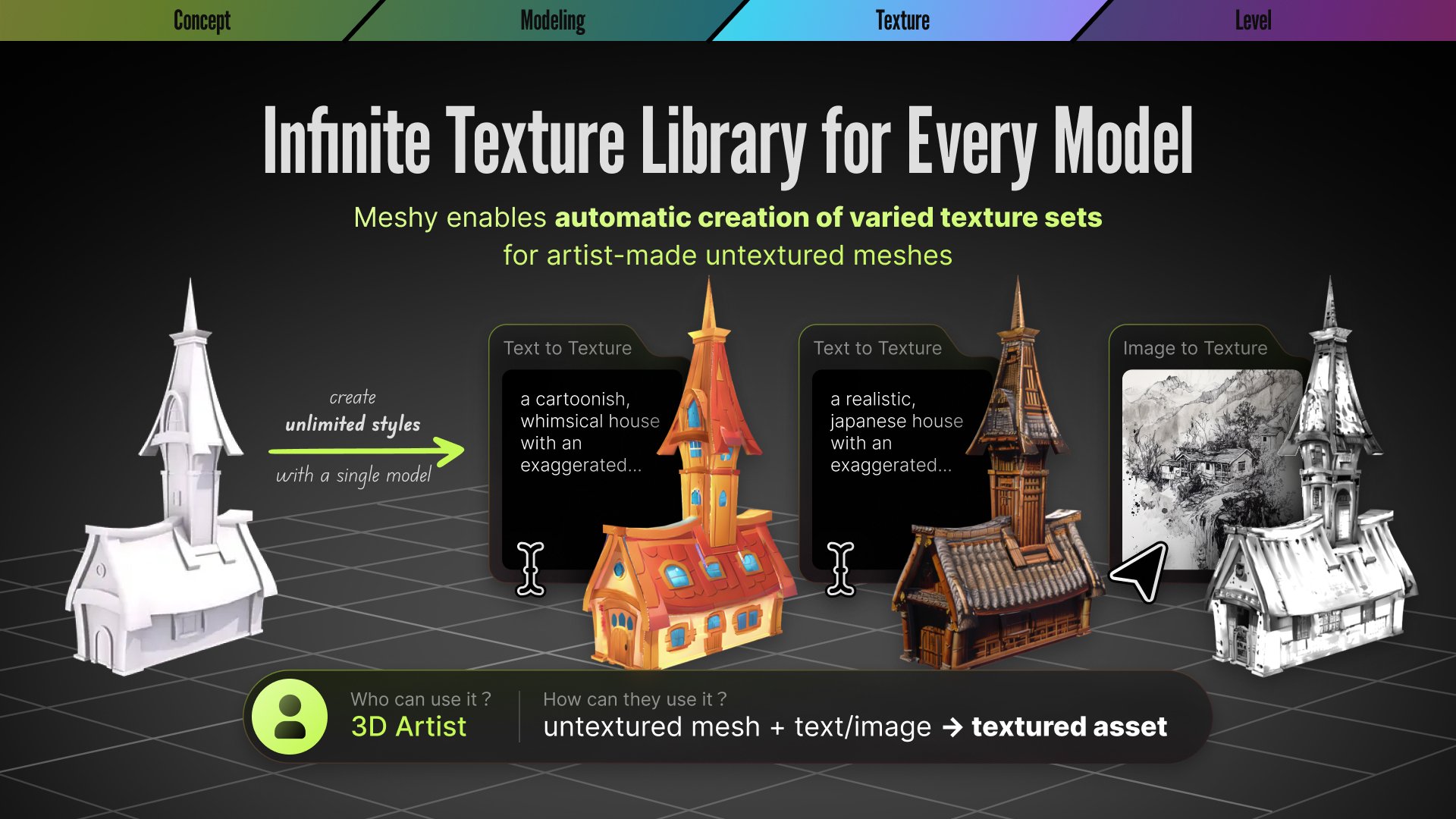 Meshy offers a range of key features that distinguish it from traditional 3D modeling software. The Text to 3D functionality allows users to convert written descriptions into fully realized models, facilitating quick iterations during the design process. The Image to 3D feature enables the transformation of photos or concept art into detailed 3D representations in mere seconds, capturing intricate details with ease. Furthermore, the AI Texturing capability generates beautiful textures for existing models based on simple text prompts, significantly reducing the time required for texture creation.