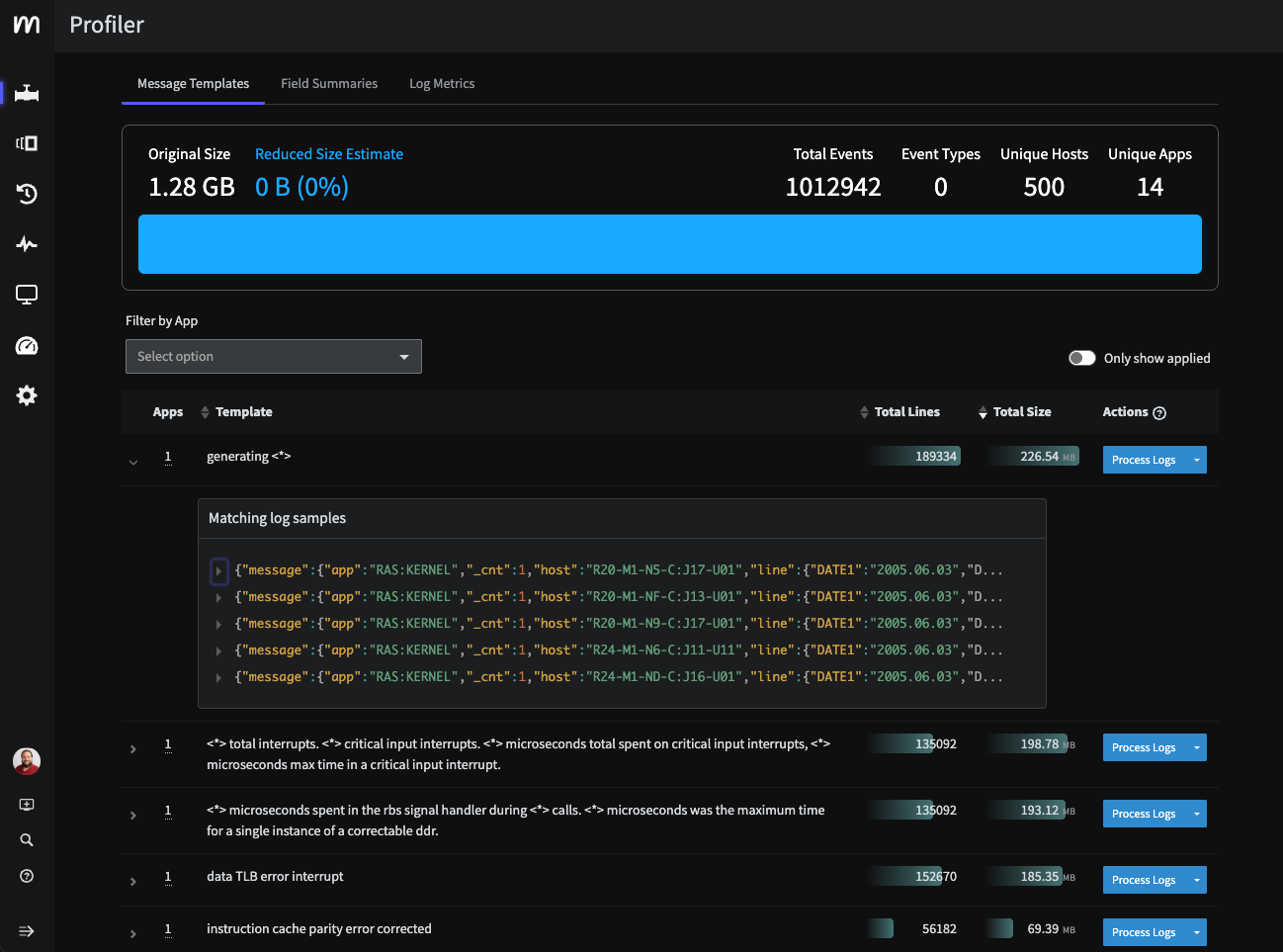 App makes it easy to see only certain types of logs, from certain servers/apps/times. Even search the logs!