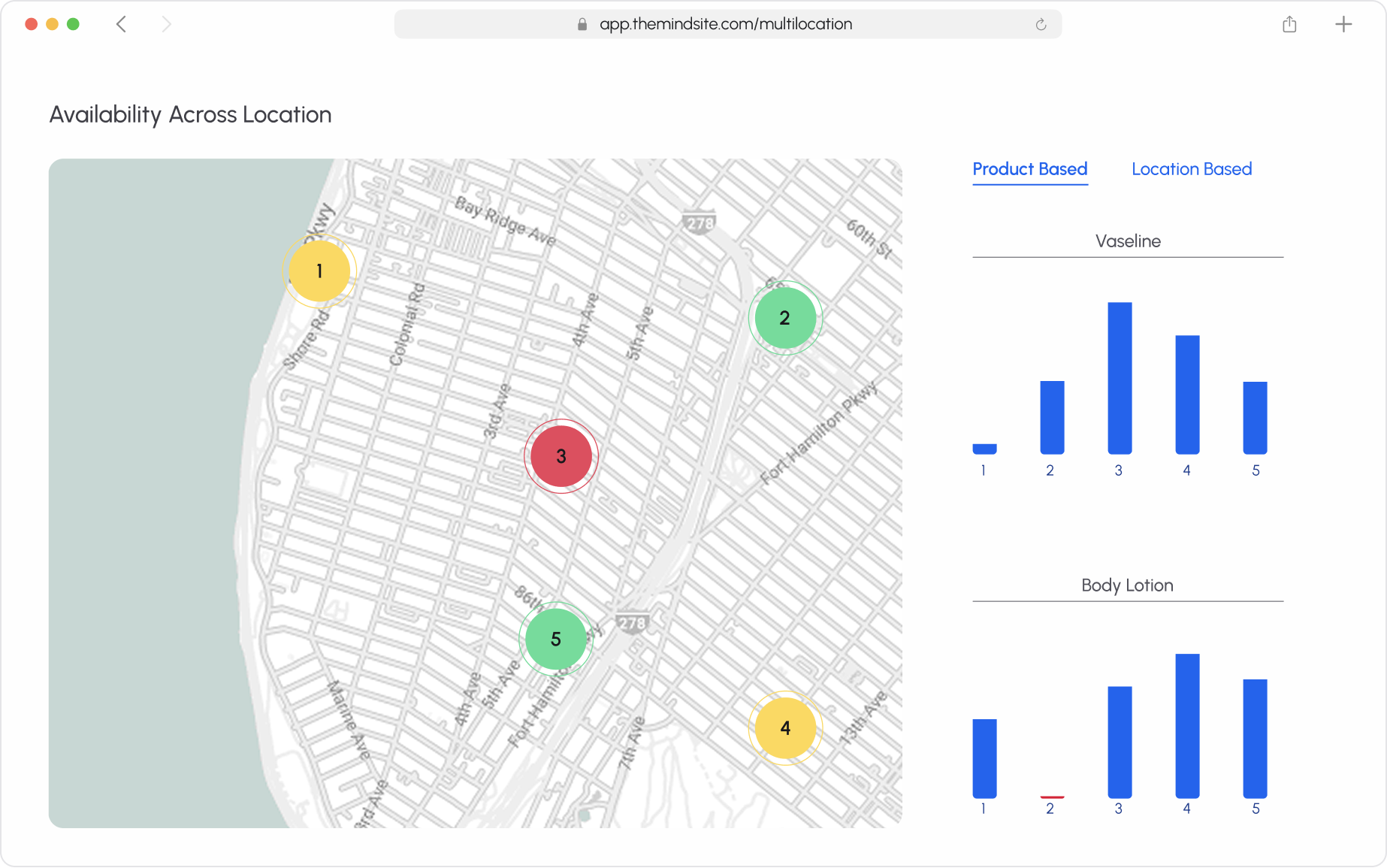 Monitor product availability across online retailer locations. Identify stock-out risks, compare performance by region, and ensure consistent product presence.