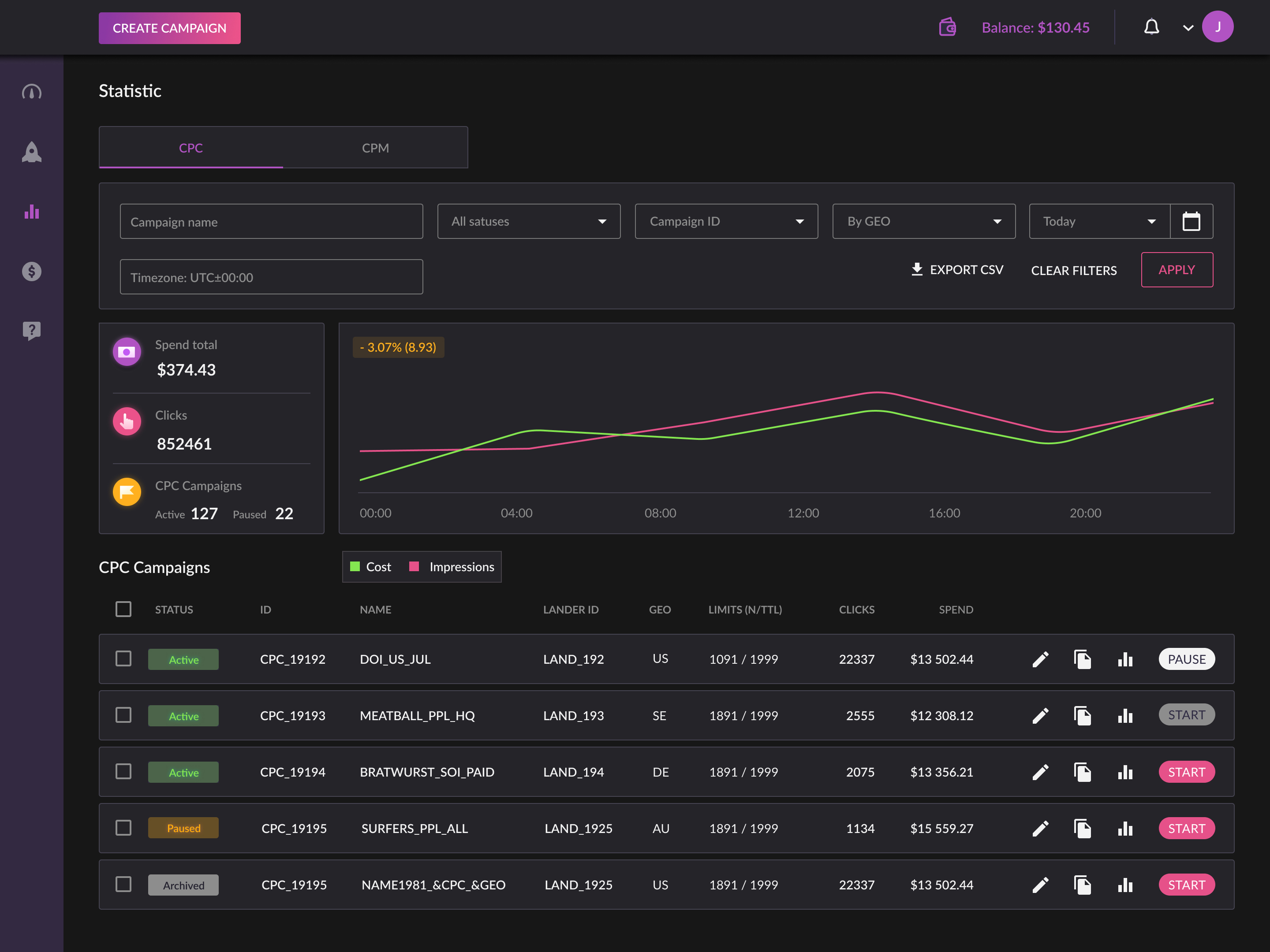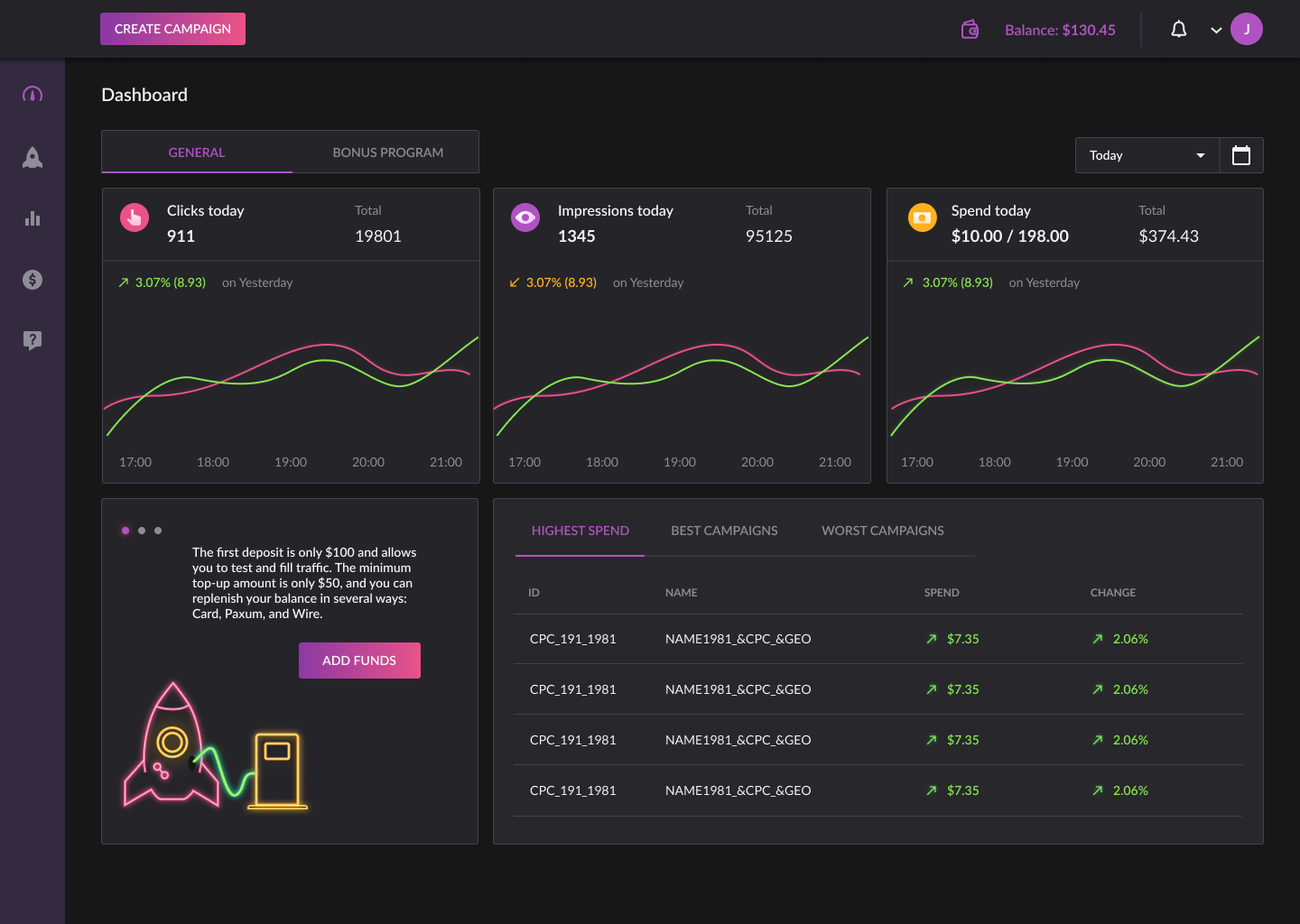 The quality of service they deliver impressed me. Traffic coming into my campaigns from their member area is of excellent quality and boosted them significantly. Competitive CPC and CPM within Tier 1 Geos allowed the maximum efficiency in spending on ads. I strongly recommend this platform because of its user-friendly interface and high-speed campaign approvals, which enable me to launch my initiatives without having to wait for days.