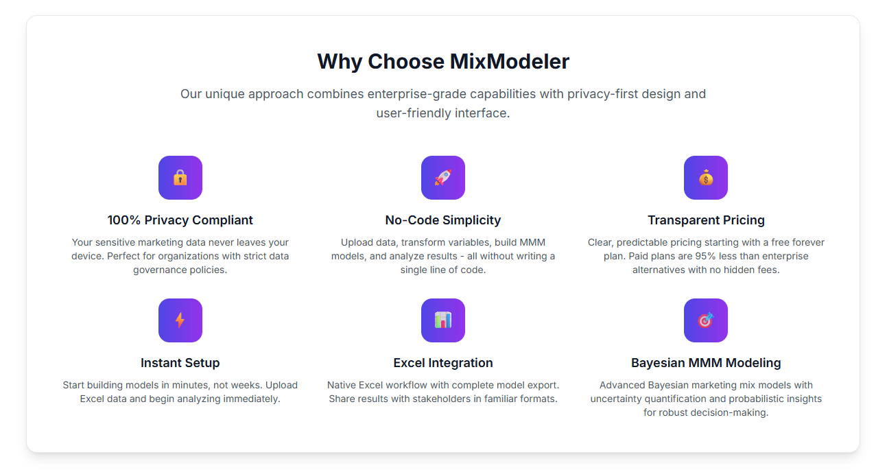 The biggest advantage is finally being able to measure all our marketing channels in one place, including traditional media like TV, Radio and outdoor advertising that we couldn't track before. The platform doesn't rely on cookies or tracking, which is crucial given all the privacy changes happening. The interface is simple and straightforward that our marketing team can use it without needing help from data analysts and data scientists. Review collected by and hosted on G2.com.