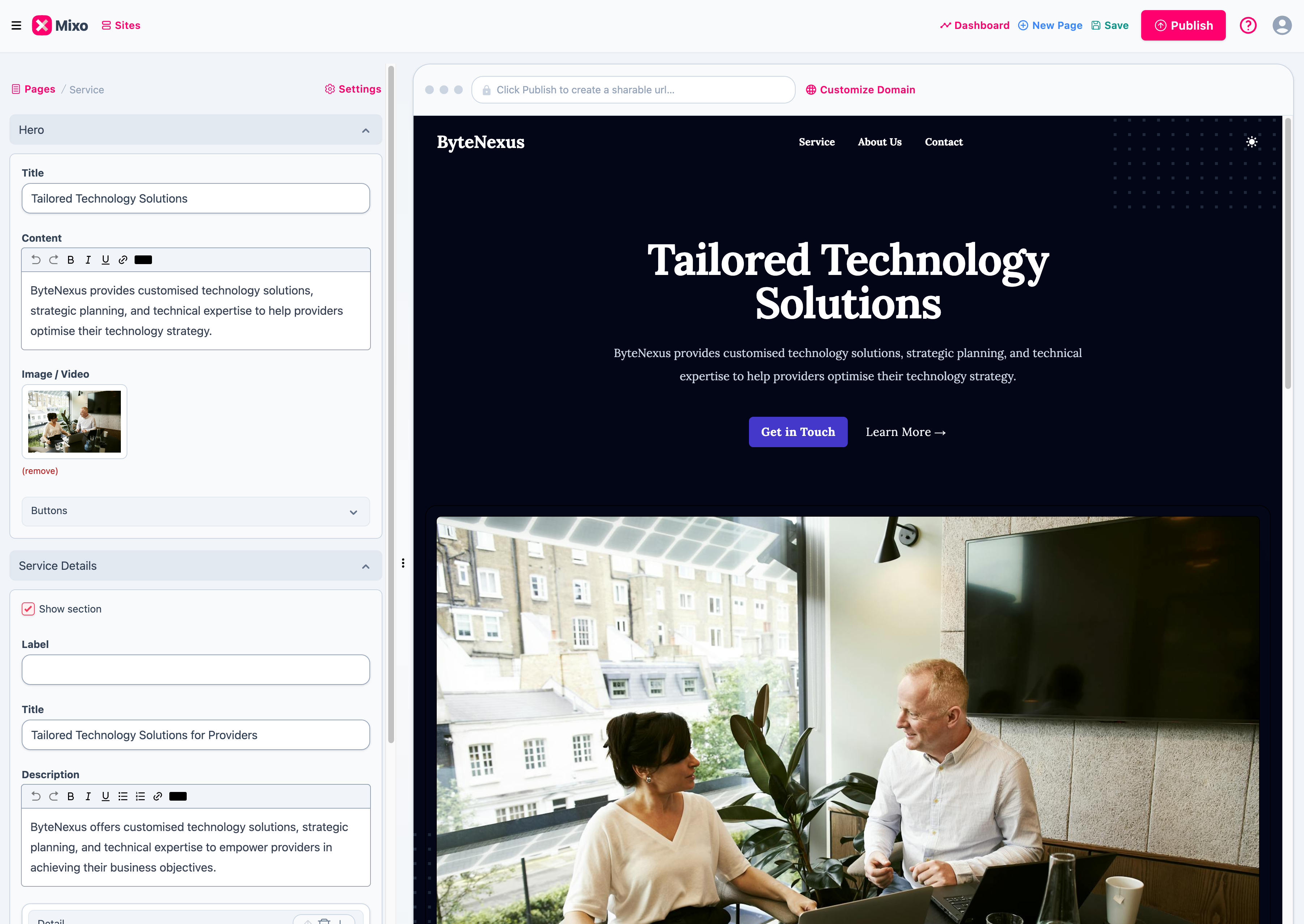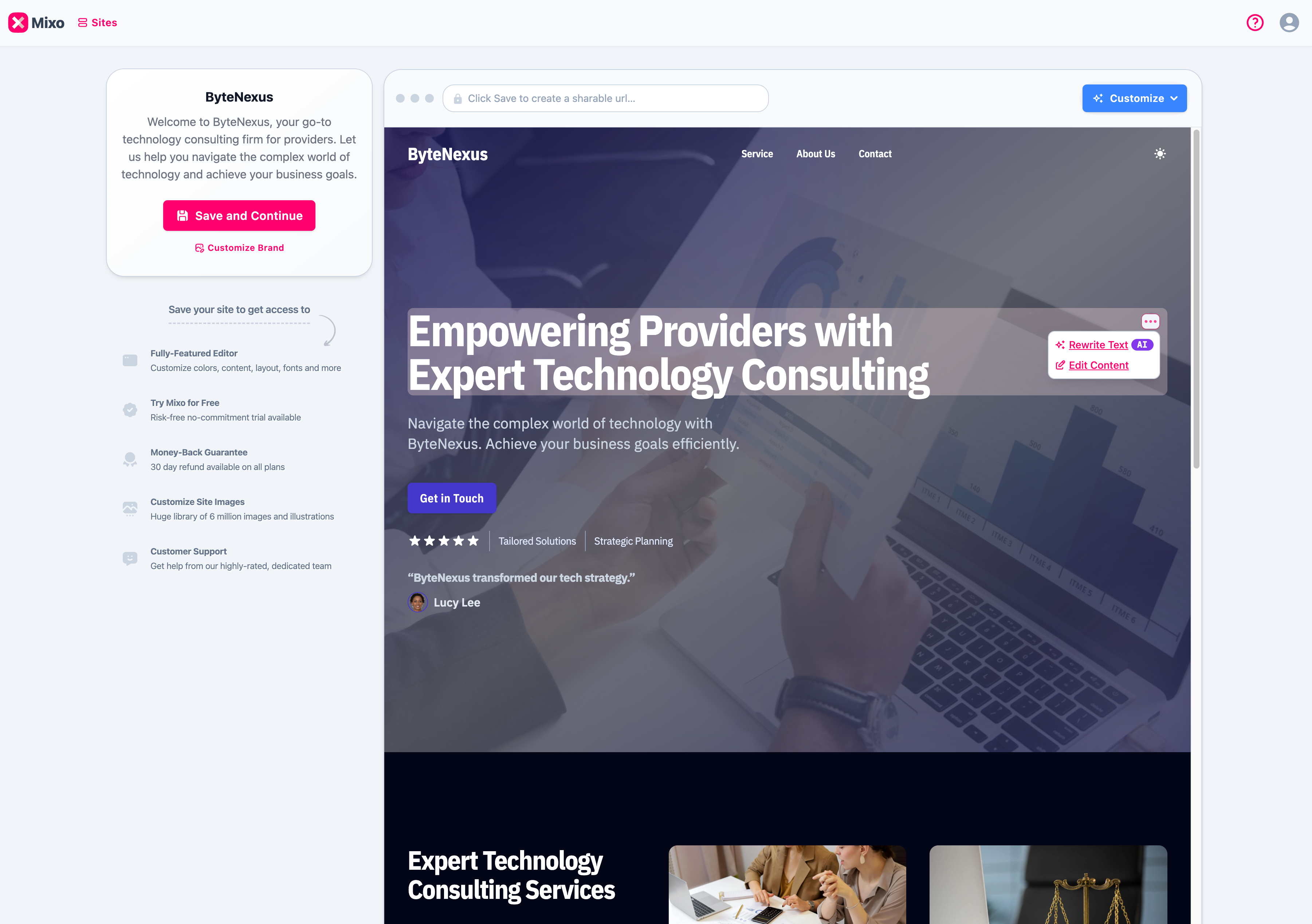 It is very easy to use. The AI recommendations help you get started and give you excellent copy and images to work with. The configurations are easy to work with, and you can really change your site's appearance. Review collected by and hosted on G2.com.