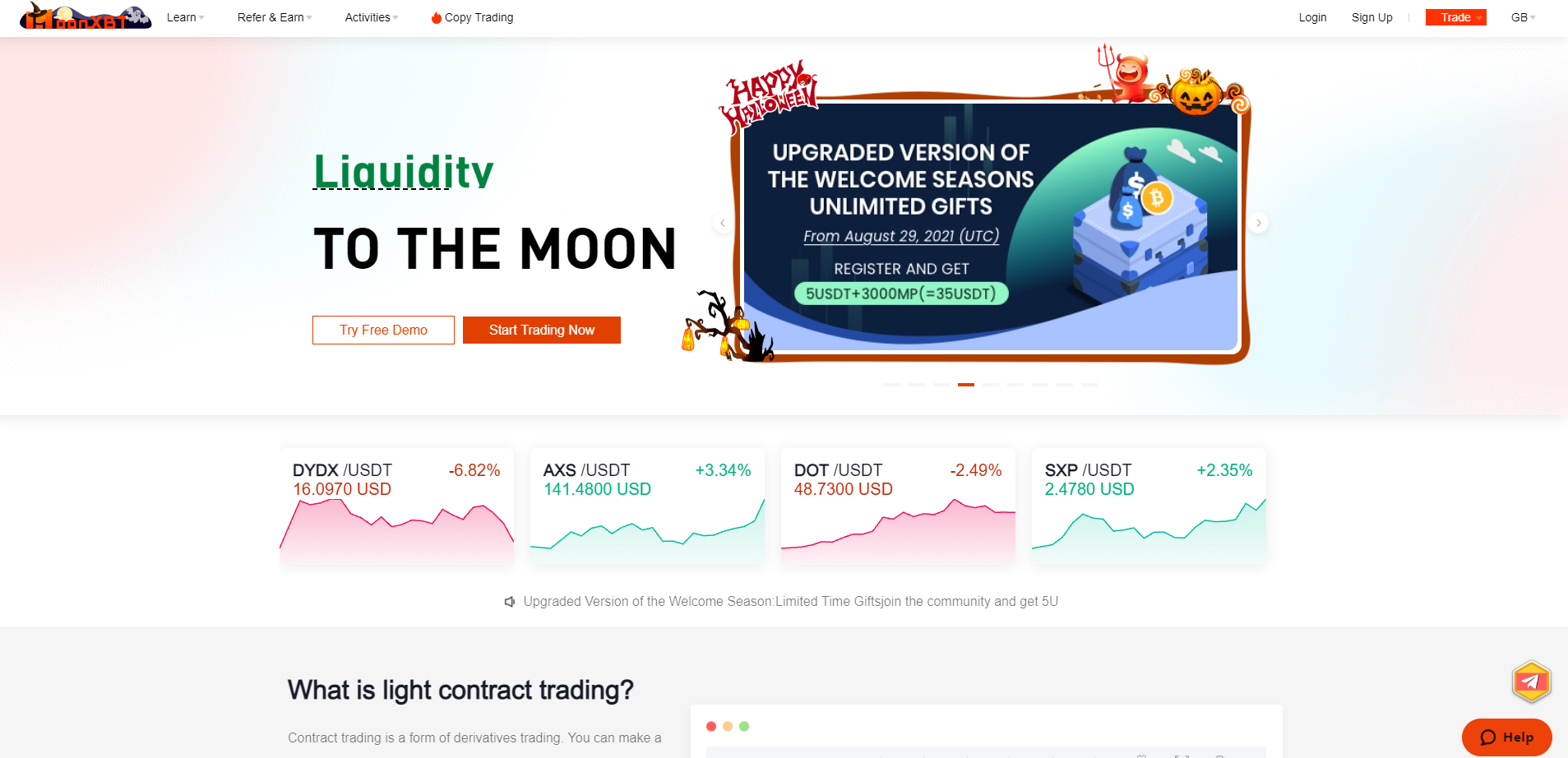 - Light Contract Trading: MoonXBT introduces "Light Contract Trading," allowing users to engage in contract trading with simplified processes, enabling positions to be opened with as little as $1 and leverage up to 150x.