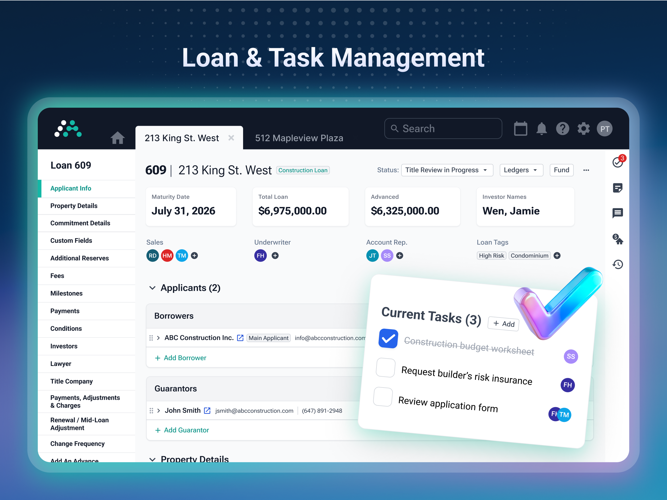 A streamlined dashboard for managing loans and tracking tasks, keeping teams aligned with real-time borrower info and to-do lists.