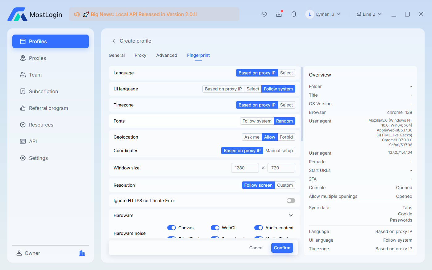 DICloak modifies and hides your digital identity by simulating all parameters that websites can see. This can effectively circumvent detections by systems. With DICloak, you can create multiple independent browser profiles for easy multi-accounting. Each account is run within its own independent browser profile, reducing the risk of account bans.