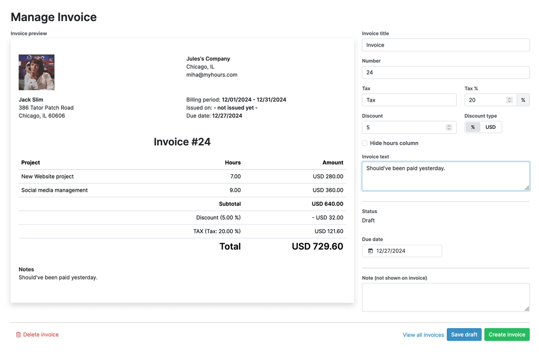 I like the ability to enter different projects and allocate tasks so that members of staff can complete their hours. My Hours is really straightforward and easy to use; it doesn't try to overcomplicate things. I also found it very easy to set up because I could upload everything via an Excel spreadsheet, which was quite straightforward. Review collected by and hosted on G2.com.