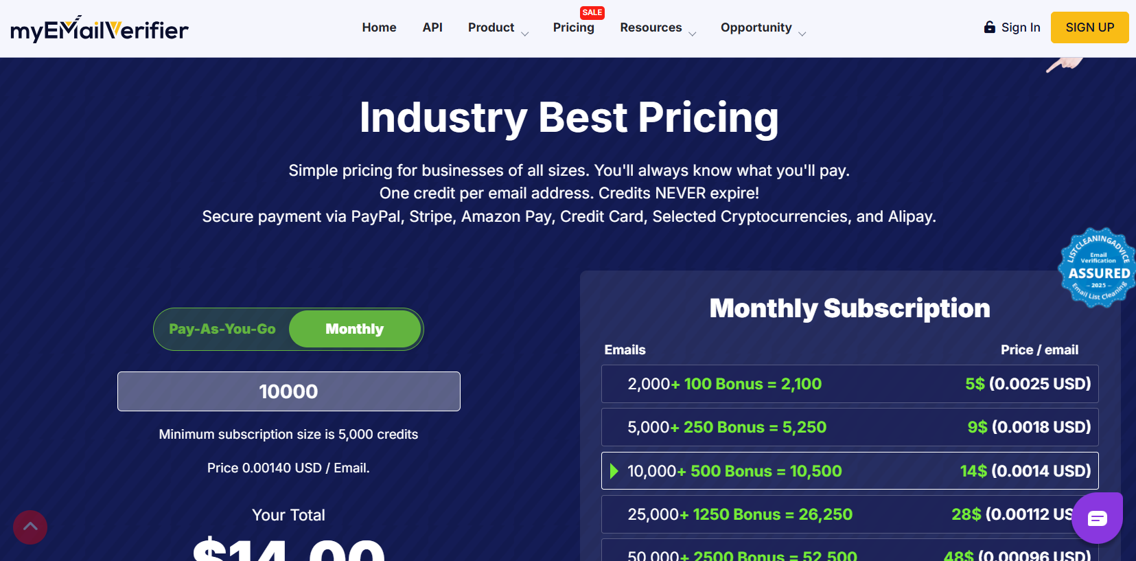 MyEmailVerifier has been a fantastic tool for our email marketing initiatives. What I value most is its accuracy and the impressive ease of use. The initial process was incredibly simple and the platform is very intuitive, which makes it easy to upload and quickly verify our email lists – the ease of implementation is excellent! This has significantly improved our delivery rates and helped us maintain a clean and efficient database, optimizing the ROI of our campaigns. The speed of verification is also a very positive point, saving our precious time. Review collected by and hosted on G2.com.