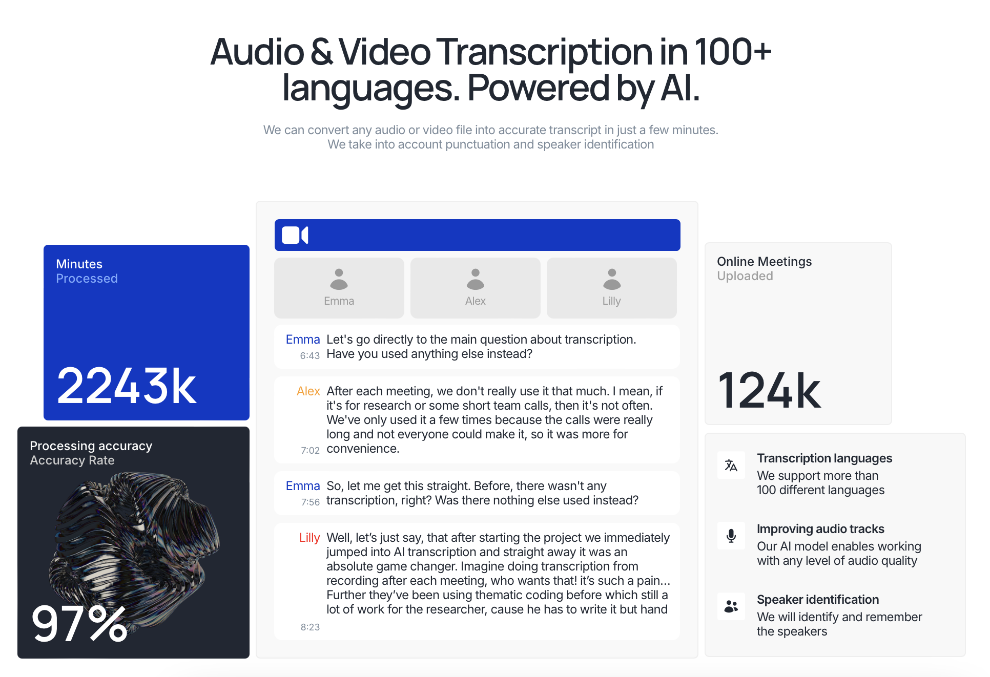 MeetGeek is a virtual meeting assistant that automatically joins your favorite conference software such as Zoom or MS Teams, records, takes meeting notes, and sends the meeting highlights to participants.