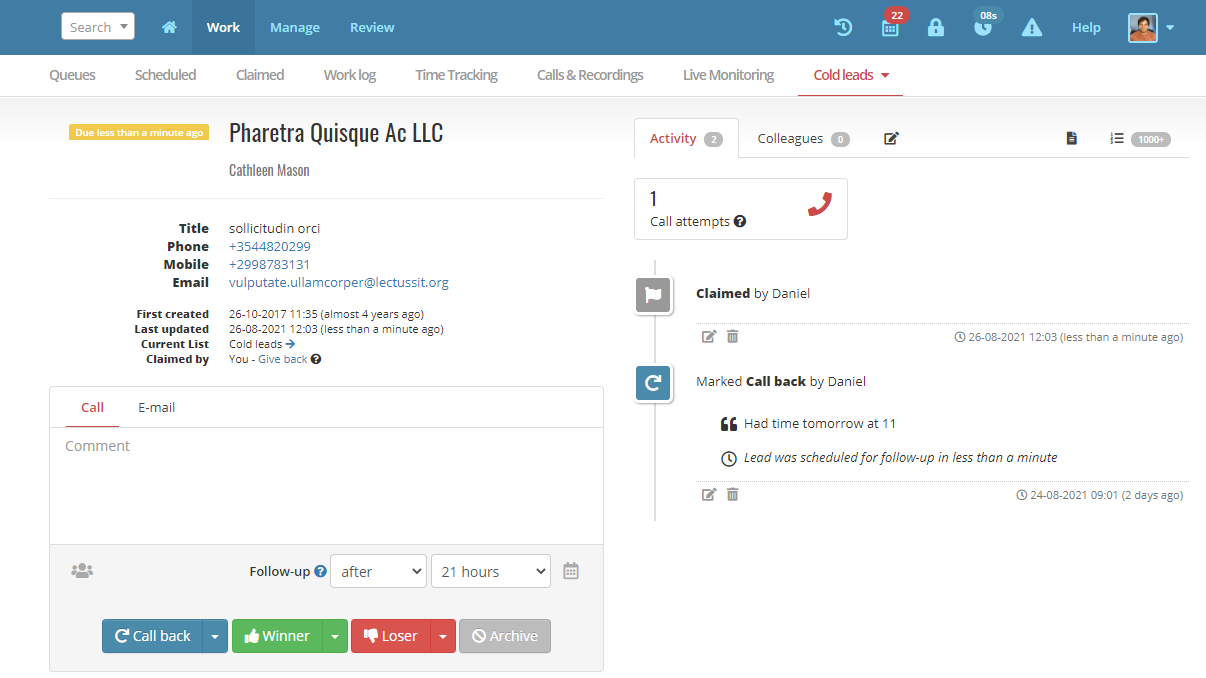 In 2013 we started with a unique queue that ensured agents would never miss a scheduled call and assist them to focus on calling. Today we offer a host of features from time tracking to a built-in dialer and Cloud VoIP solution to Live Monitoring & robust reporting.