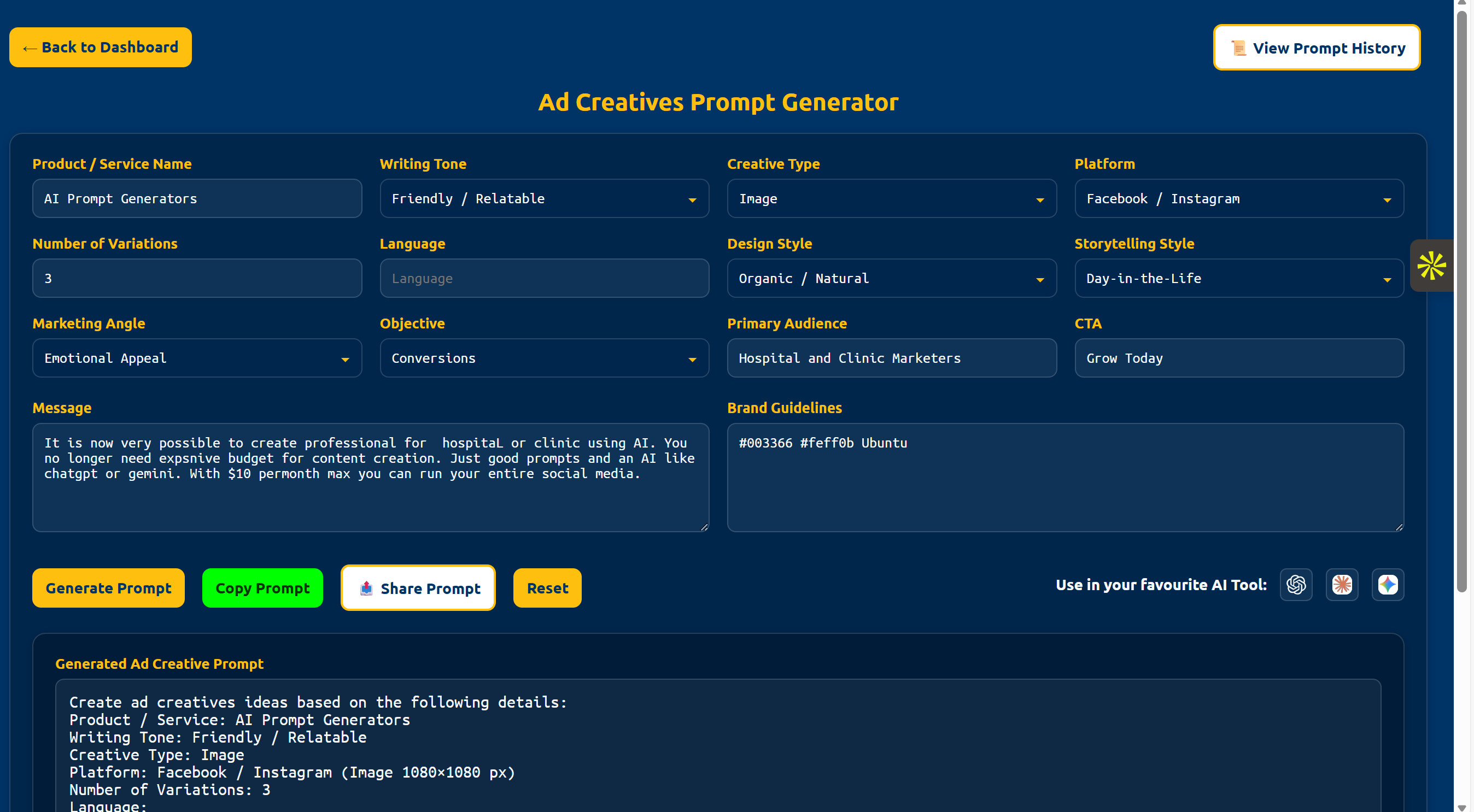 • **22+ Custom AI Generators** - Specialized prompt creators for ChatGPT, Claude, Gemini, Midjourney, GitHub Copilot, Cursor, and 15+ more platforms