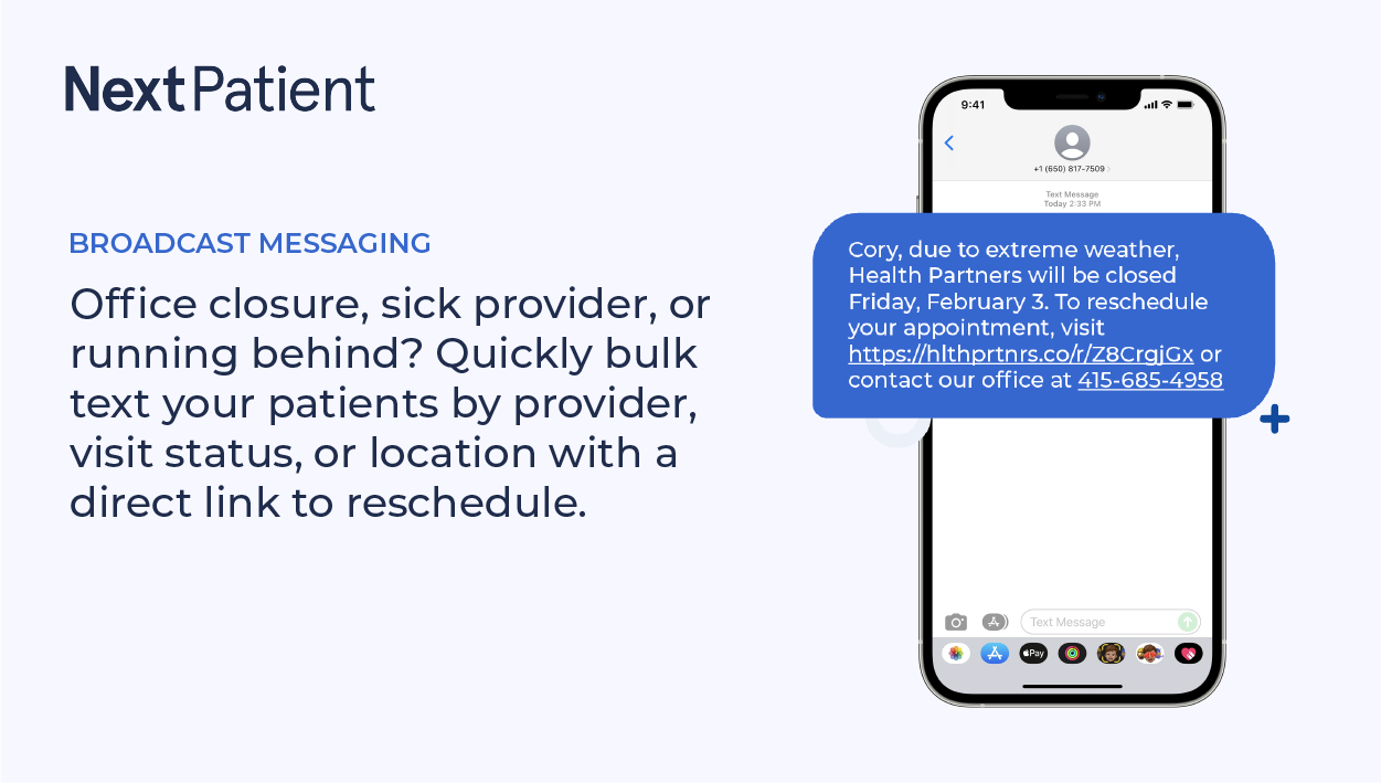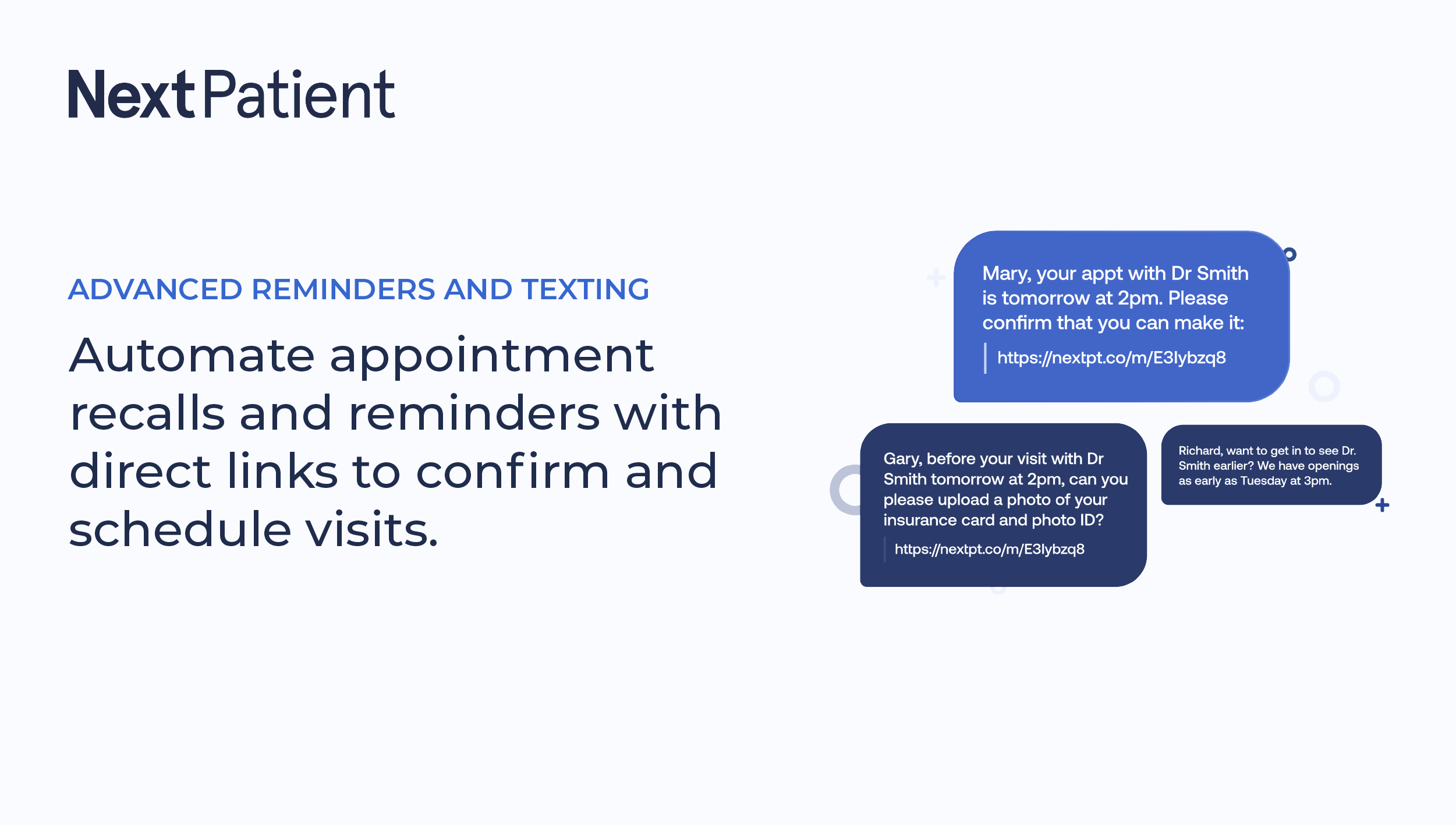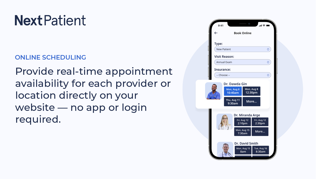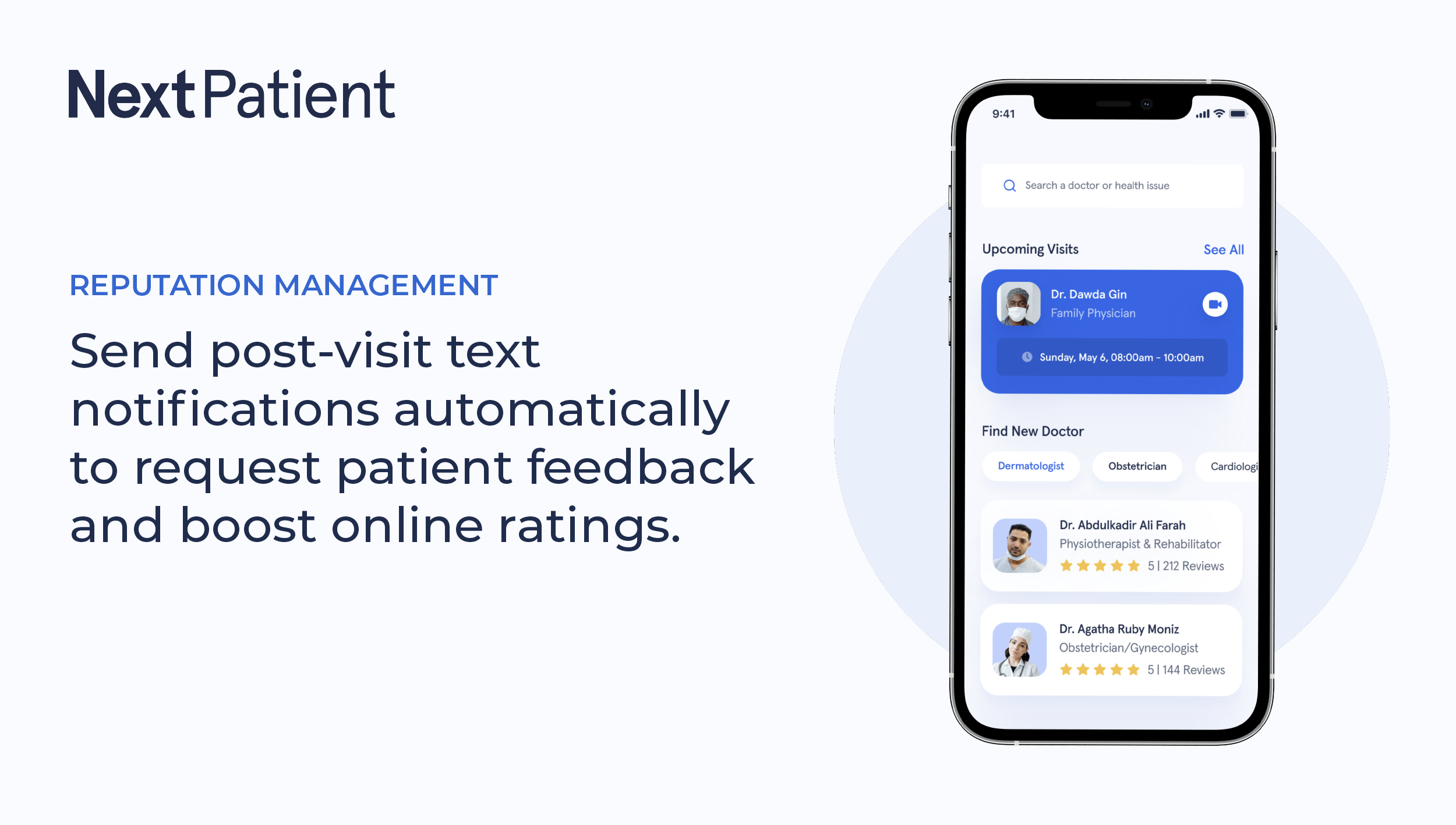 Next patient is an awesome platform that allows patients to easily manage their own appointments anytime, anywhere and reduces office burnout and let's our team focus on in patient care Review collected by and hosted on G2.com.
