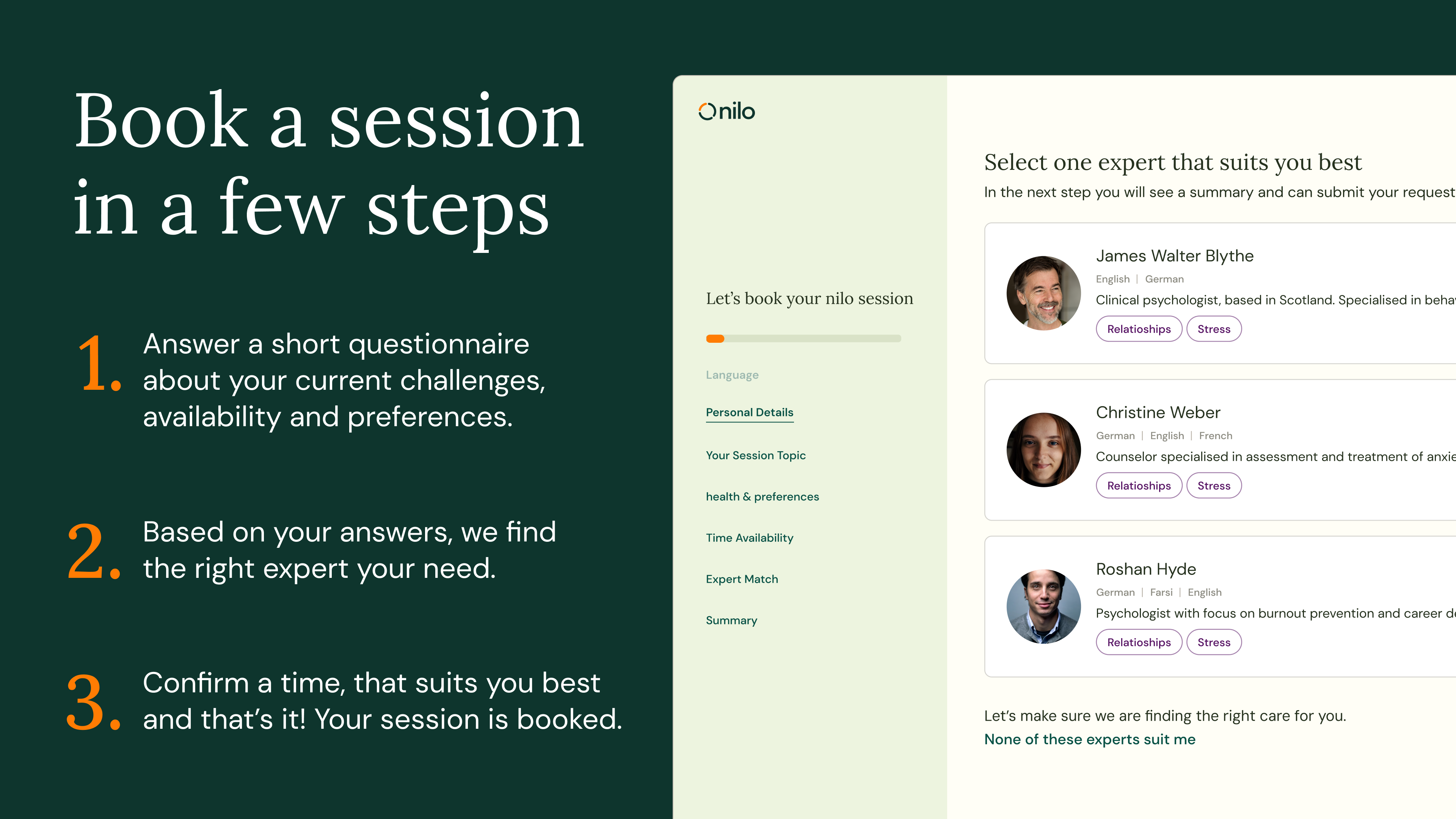 It's always easy to talk to the Nilo team whenever you have to reschedule or amend anything when it comes to your appointments.