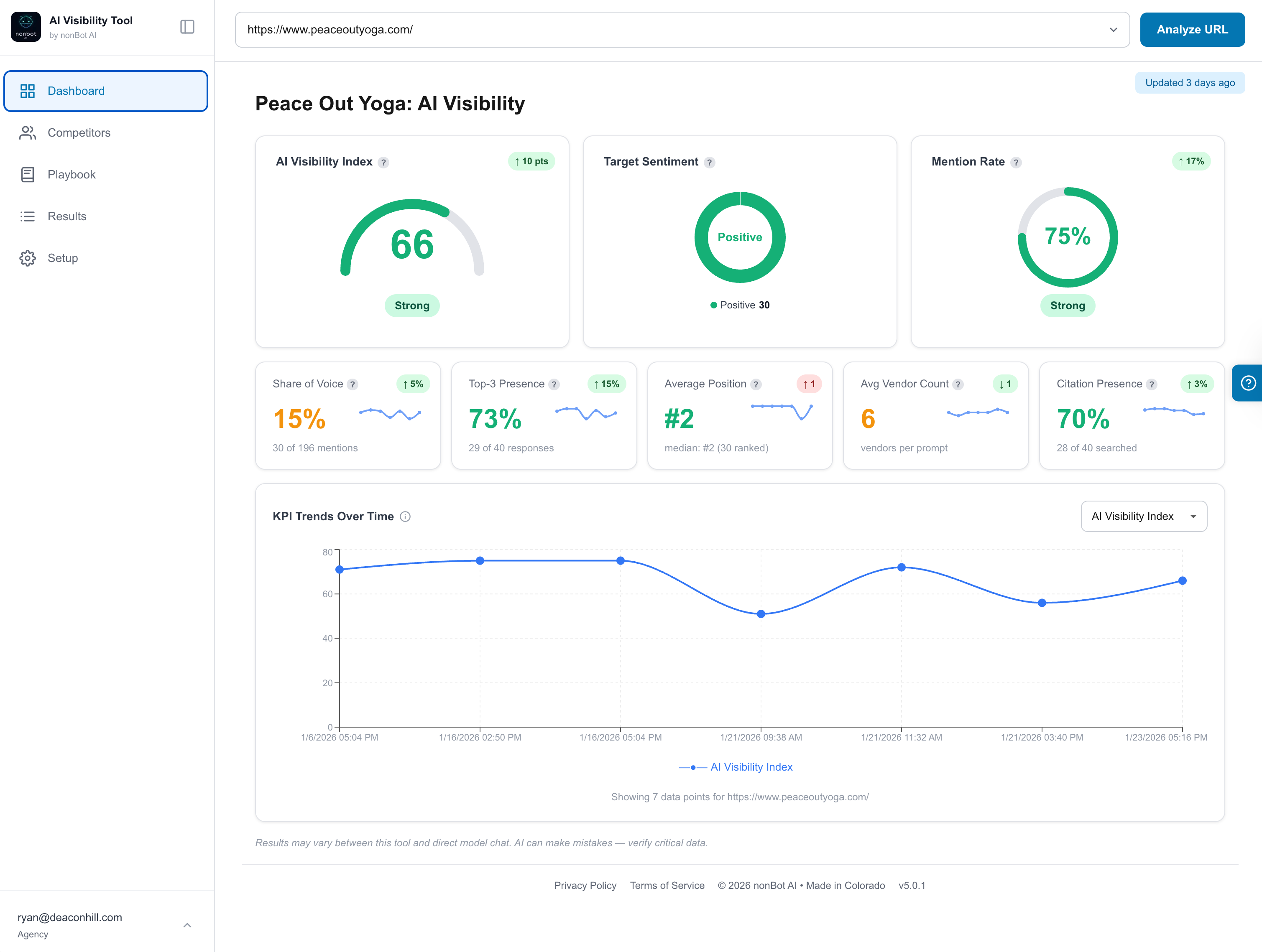 We’ve been using NonBot AI’s Visibility Tool for a few months now, and the results have honestly exceeded our expectations. The increase in our AI visibility has been noticeable in how and where our business is actually showing up across AI platforms.
