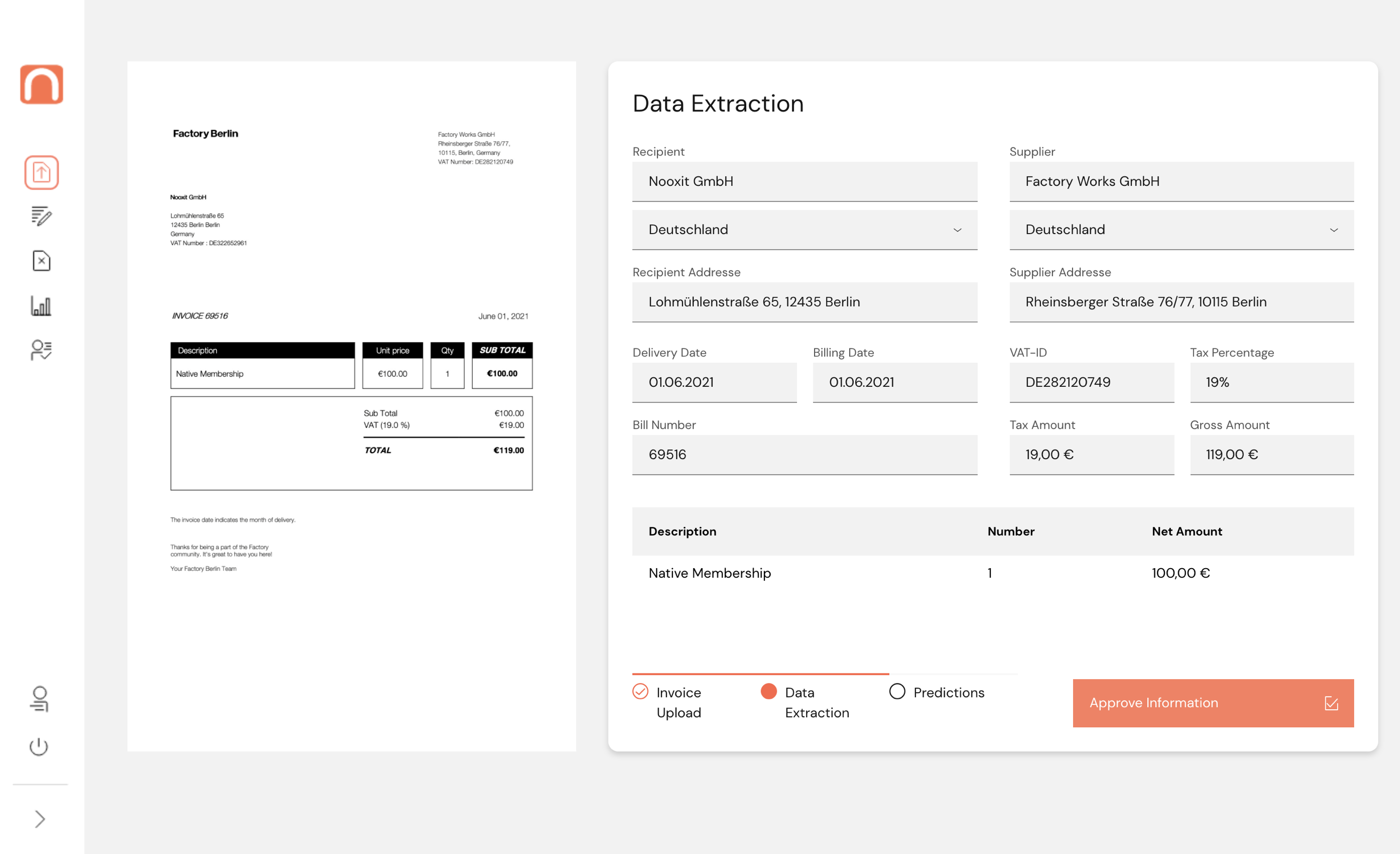 experience with nooxit is pretty great, its can be integrated with serval accounting softwares. The main part of the nooxit, its every easy to use and creating the flow & processing it in timely manner, ended up saves our time. Review collected by and hosted on G2.com.