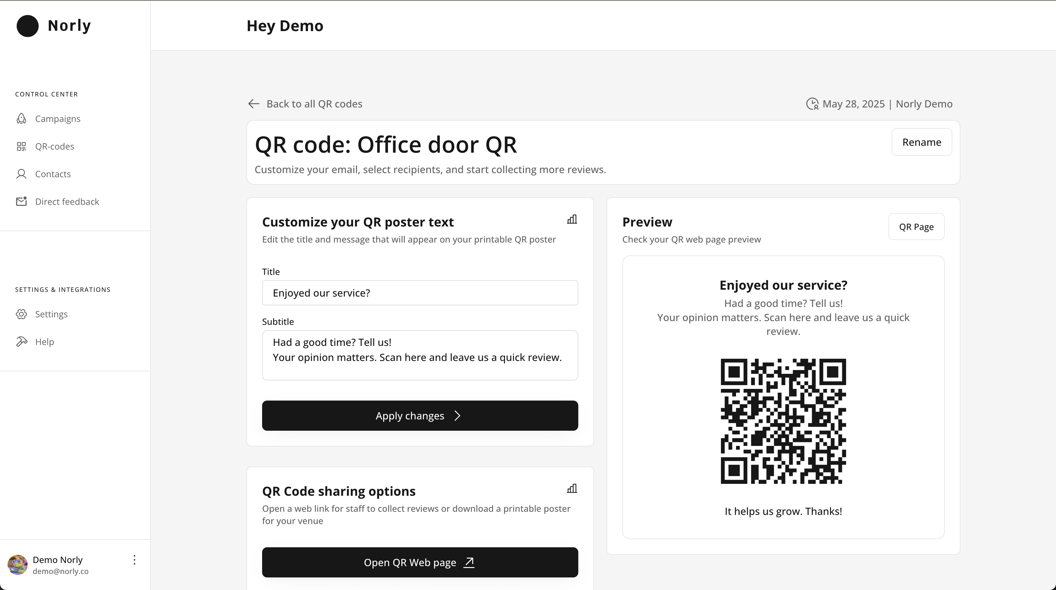 Norly Demo - Generate QR Code for Instant Reviews