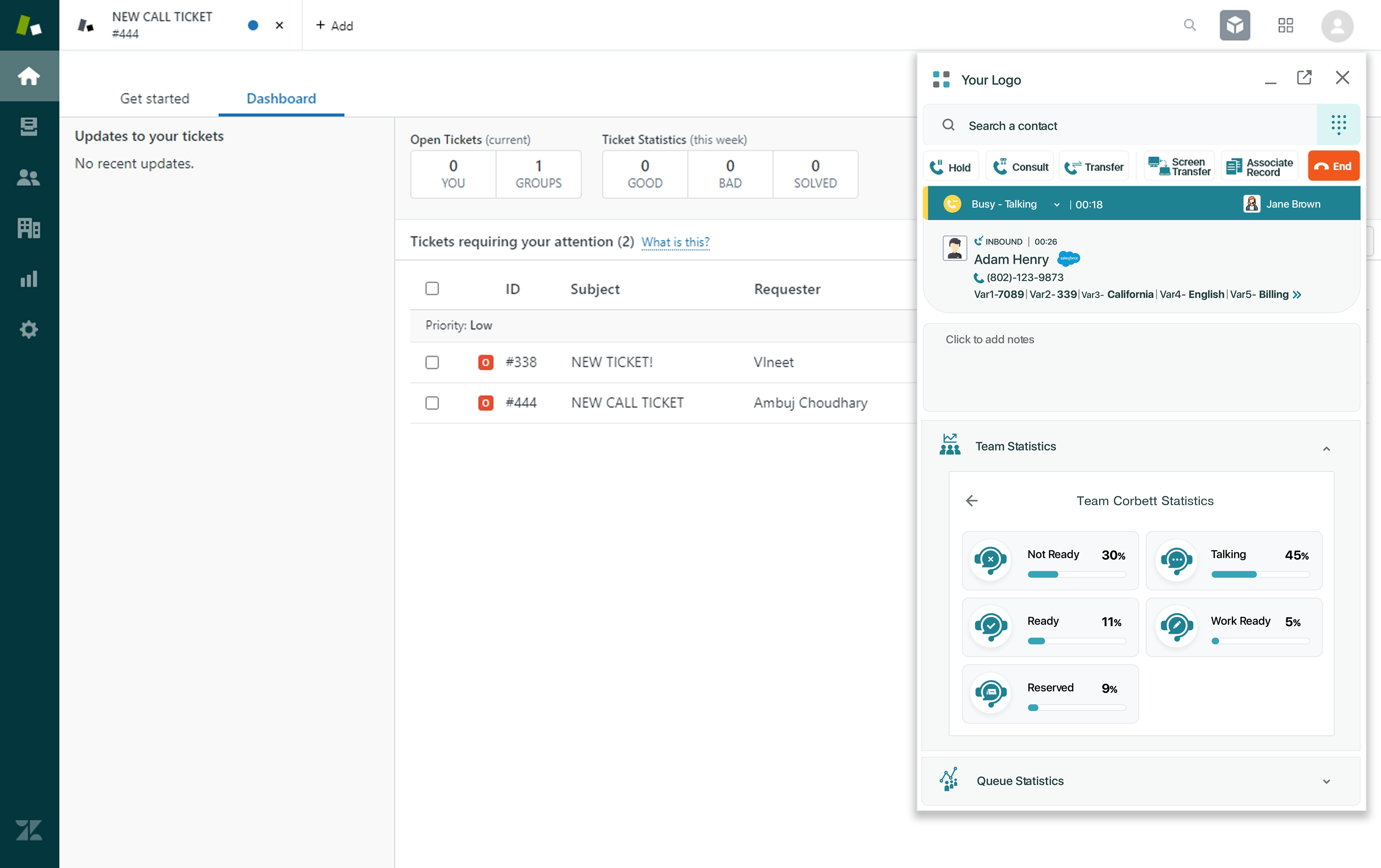 Drive contextual conversation, team efficiency, and productivity by prominently using Smart CTI Connectors across contact centers to manage inbound and outbound calls.