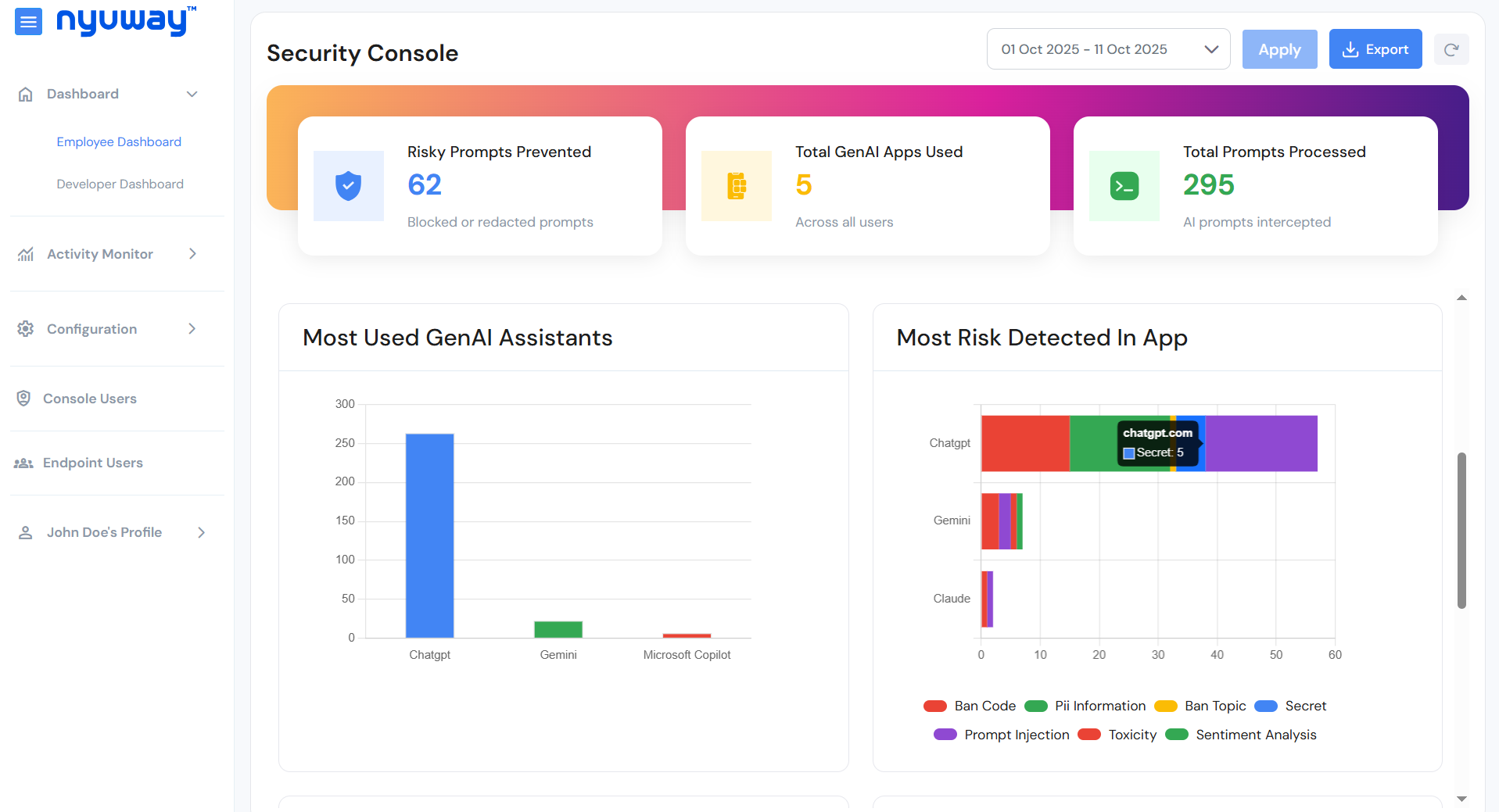 Monitors your cloud applications for data leaks, cyber-threats and regulatory violations that put your business at risk.