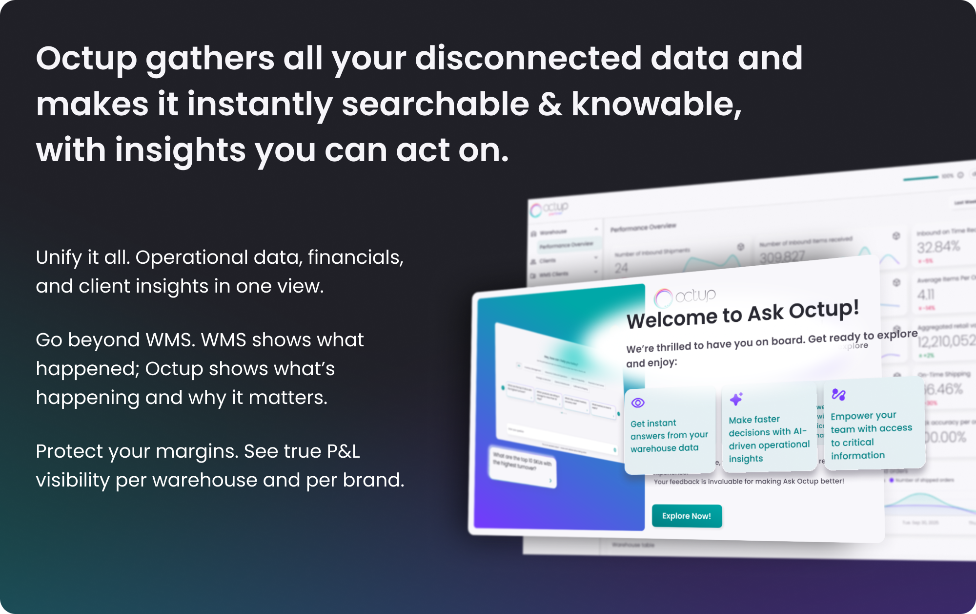 I find the customization of reporting boards in Octup very helpful for our different warehouse teams to see what is most important to them. The ability to set custom reporting boards is unique, allowing me to set different metrics for a few boards, which means specific boards for different department management teams without the need to filter through irrelevant information. The account management team is also amazing to work with. I also appreciated the dedication from the Octup team during the initial setup, ensuring our manual processes were minimal. Review collected by and hosted on G2.com.
