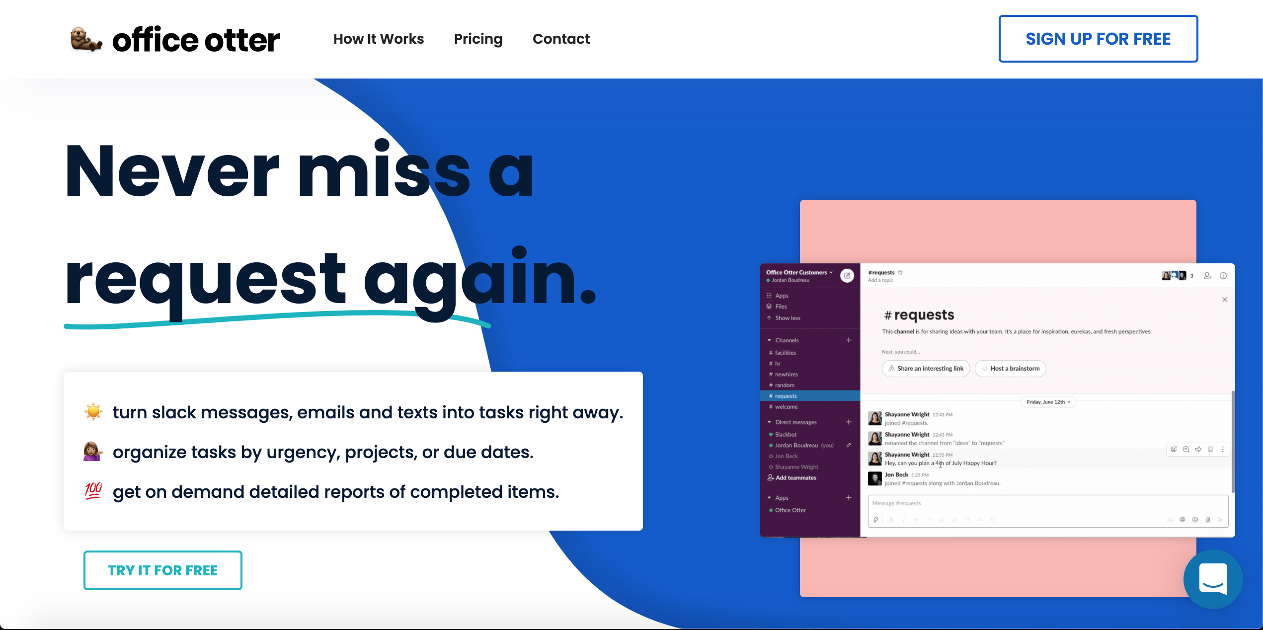 Not much, I just wish that it had a better notification feature so I would see them when I am not only in the app or browser. I would also love to be able to be connected to the Office Otter community. Review collected by and hosted on G2.com.