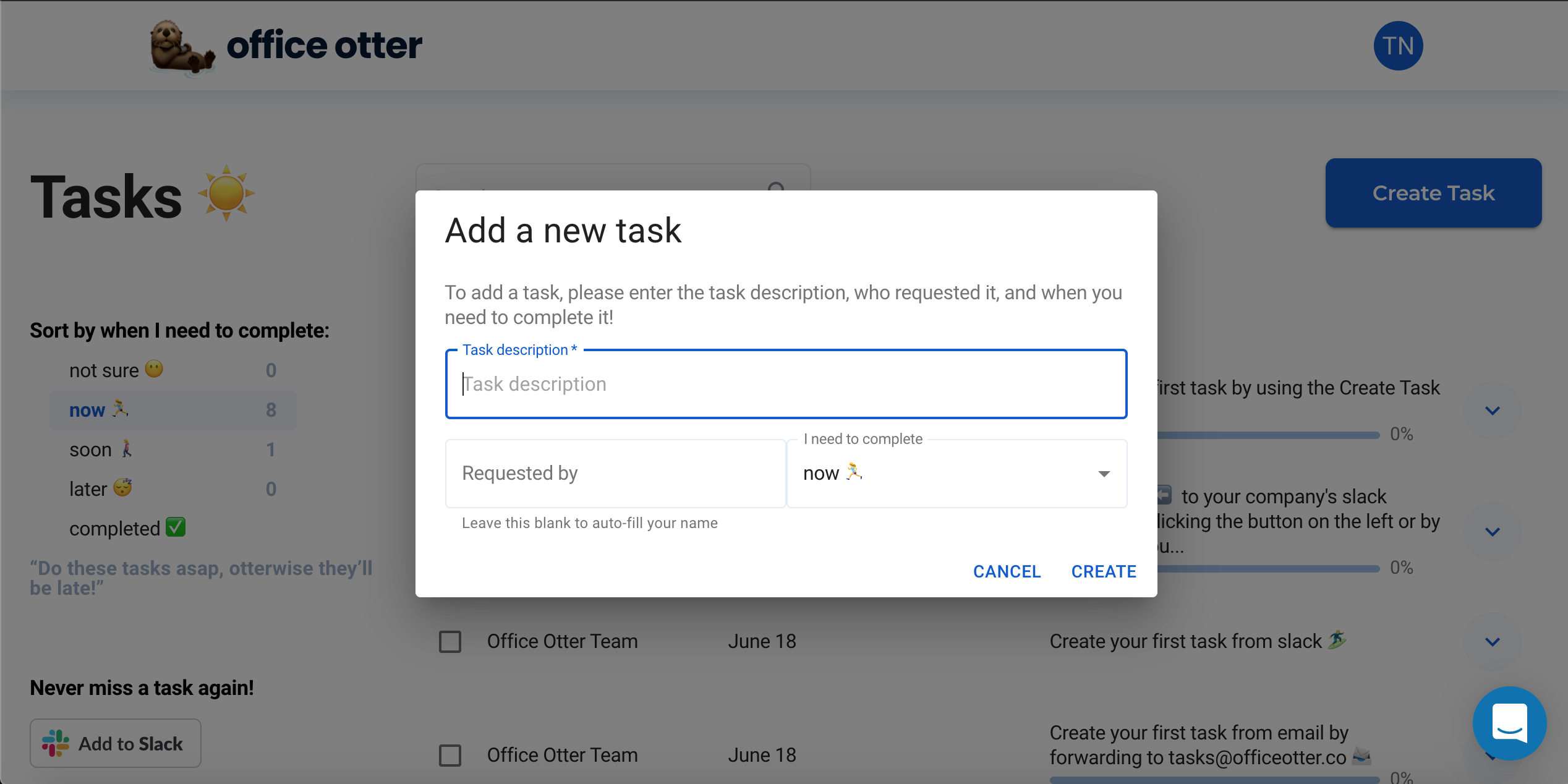 I keep Office Otter open on one of my screens constantly so my to-do list is always in front of me. Gone are my days of handwritten lists that I would lose. I also like that I can prioritize items and label them into categories. Sorting my lists helps with work in a more organized and efficient manner. Review collected by and hosted on G2.com.