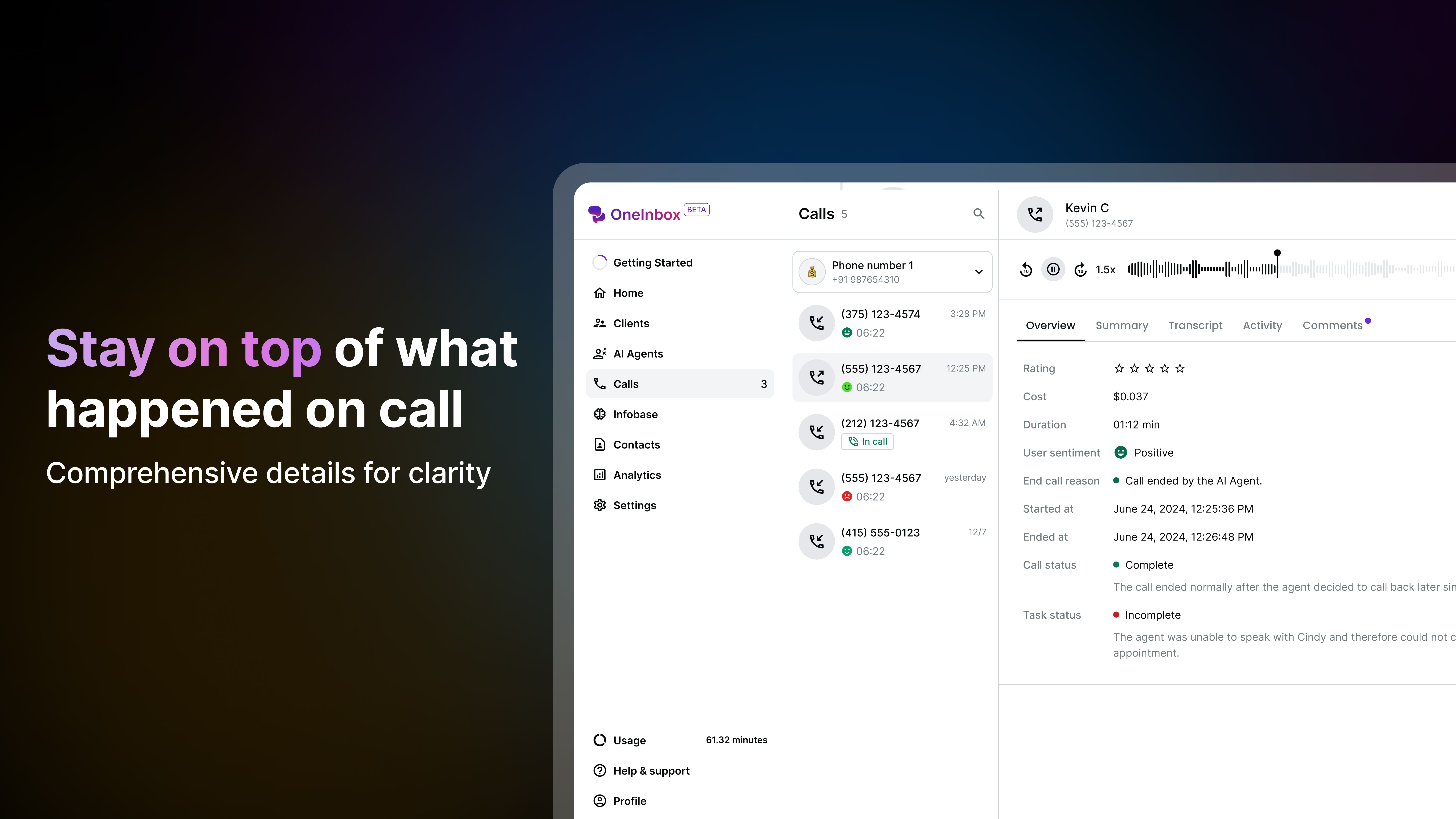I run an AI Solutions company, and I’ve been looking to find the best Voice AI product to serve my clients with reliability, flexibility, and quality. I’ve tried lots of tools, but none came close to what OneInbox delivers.