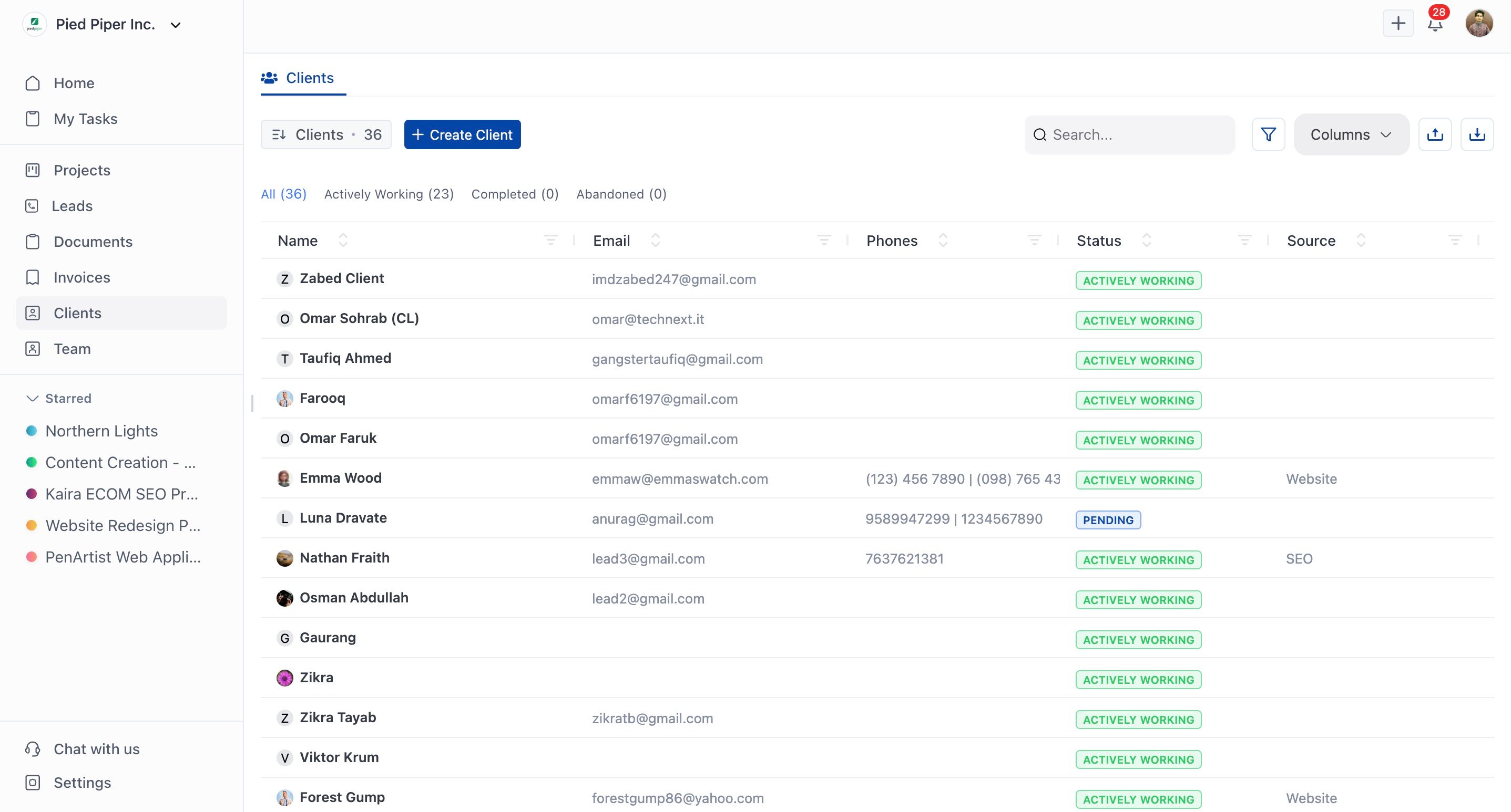 The built-in CRM is tailored for agencies that sell services, not products. Capture leads, nurture opportunities, and move deals through your pipeline until they become long-term clients. Proposals, contracts, and agreements can be created and shared directly in the platform, with e-signatures included so you close deals faster without chasing paperwork.