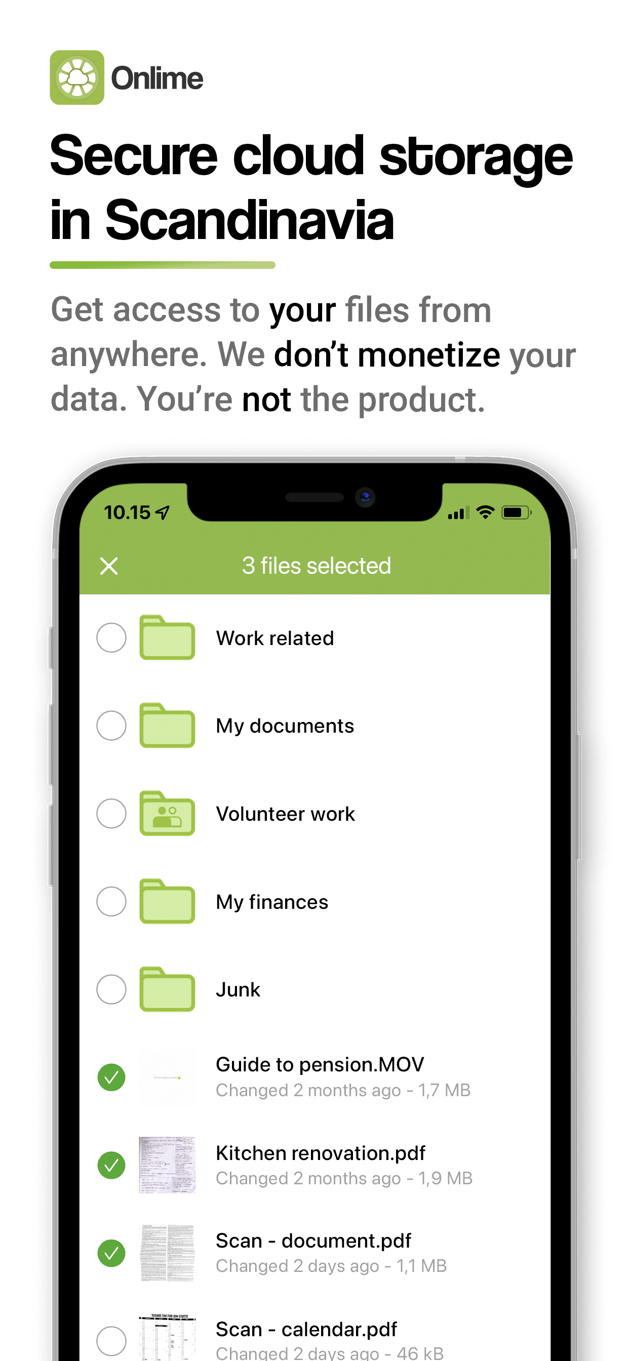 Onlime is committed to user privacy and environmental responsibility. Data is stored in GDPR-compliant datacenters located in Norway, powered entirely by renewable energy. The service operates without external investors, ensuring that user data is never monetized or shared with third parties.